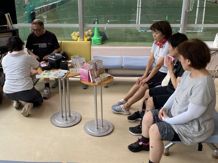 また、鍼灸師によるセルフツボ刺激についてレクチャーを実施し、今回は健脚や消化を改善するツボをセルフケアしました。