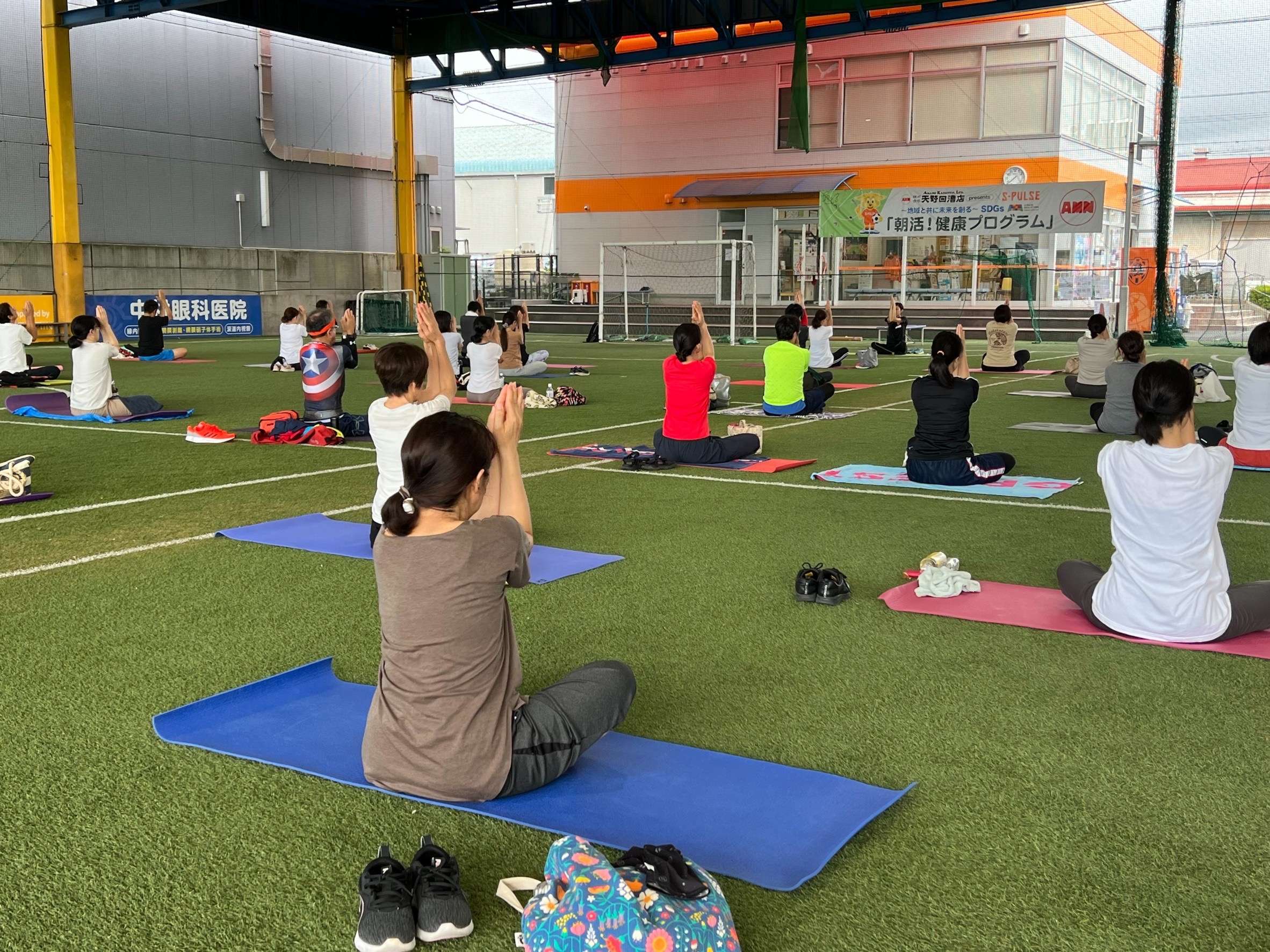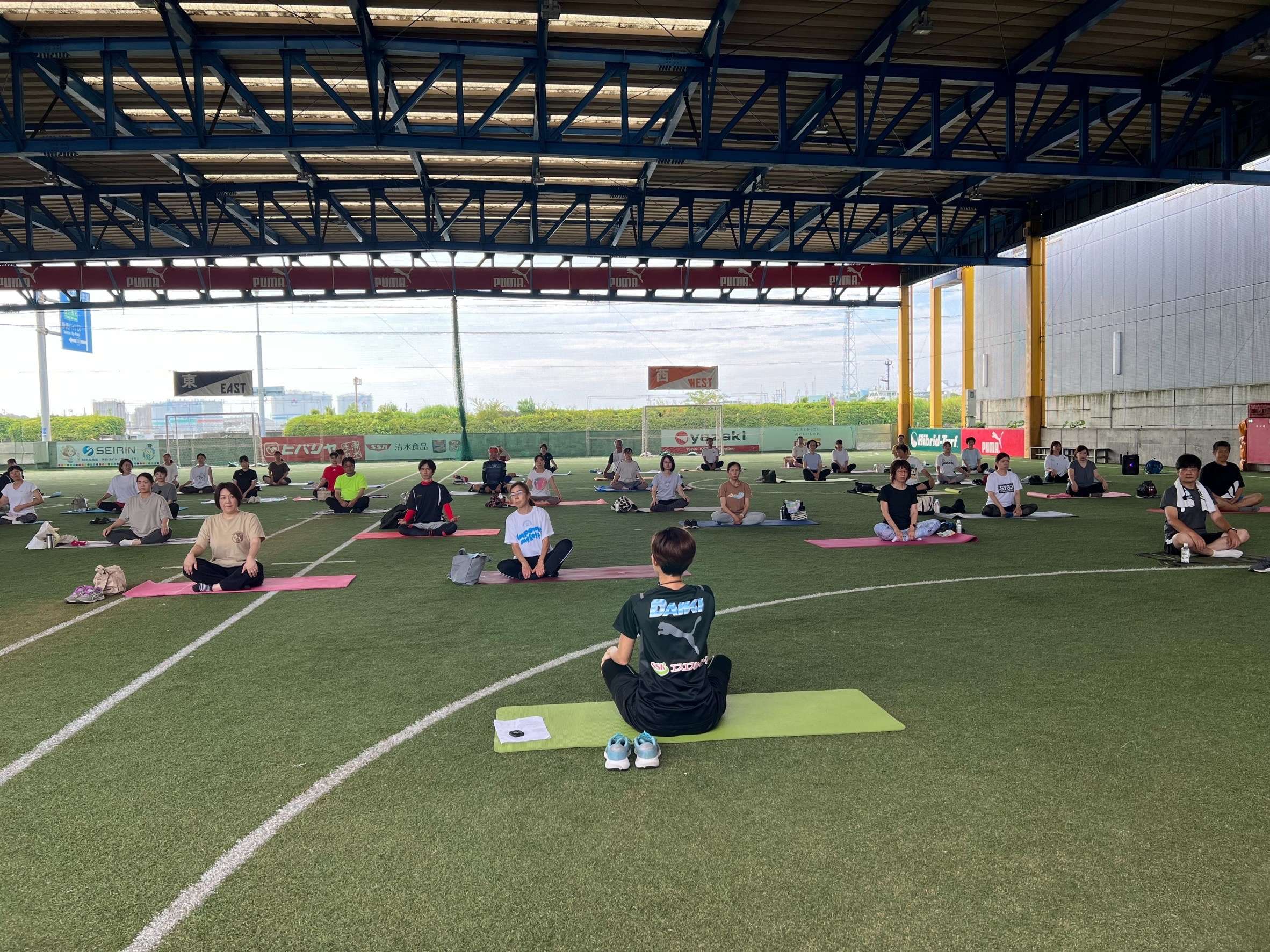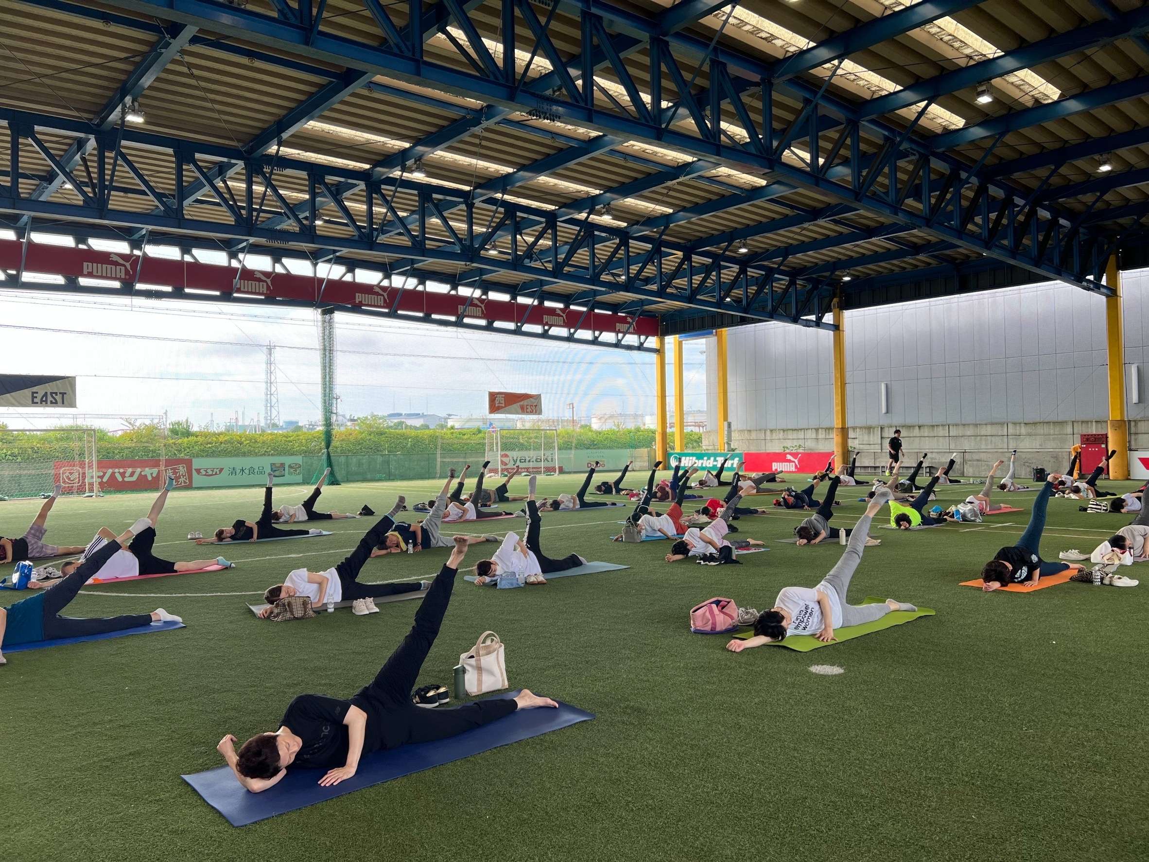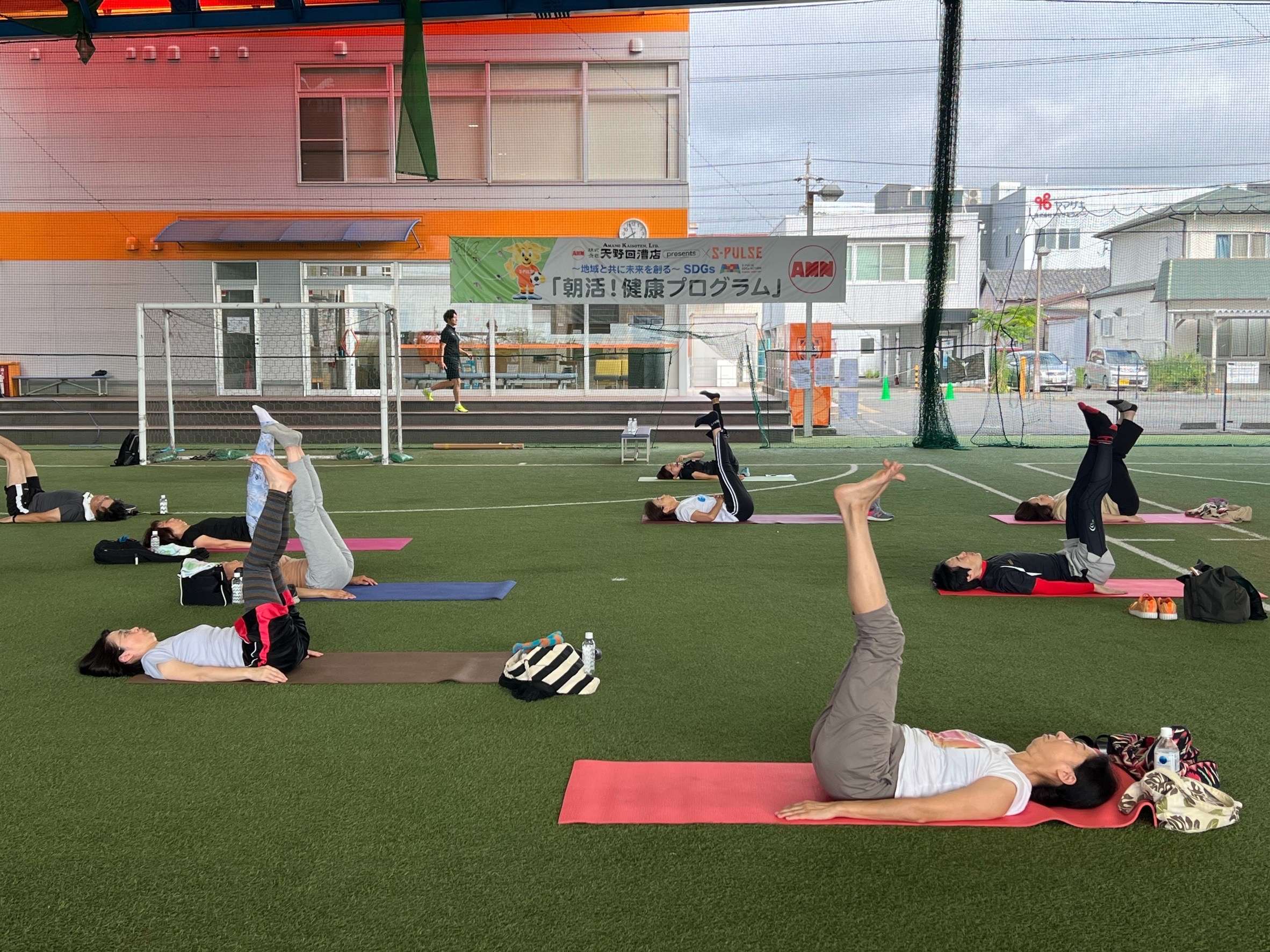 「ピラティスコース」を、7月27日(土)7時30分より、エスパルスドリームフィールド清水にて開催し、52名の皆様にご参加いただきました。
