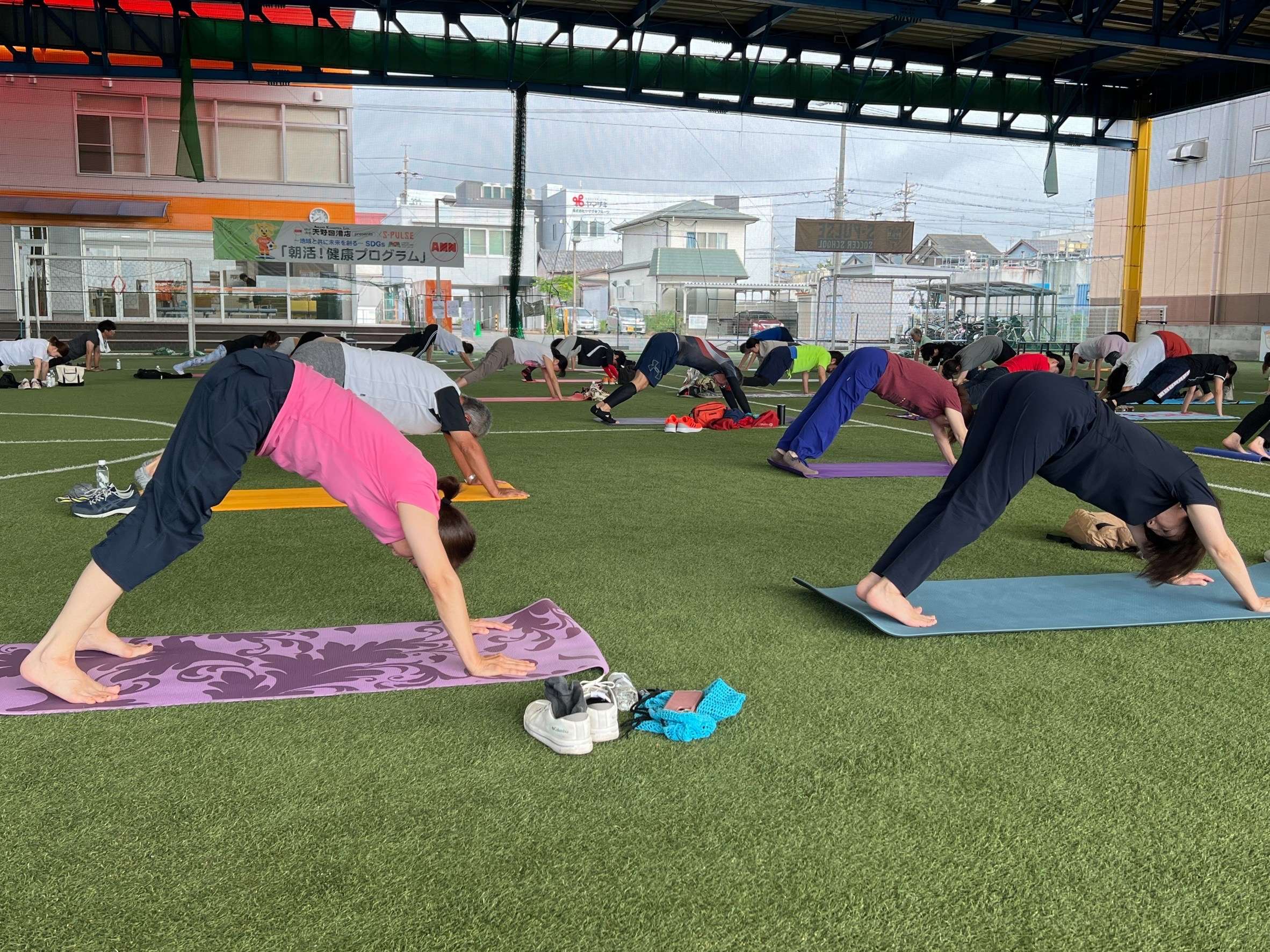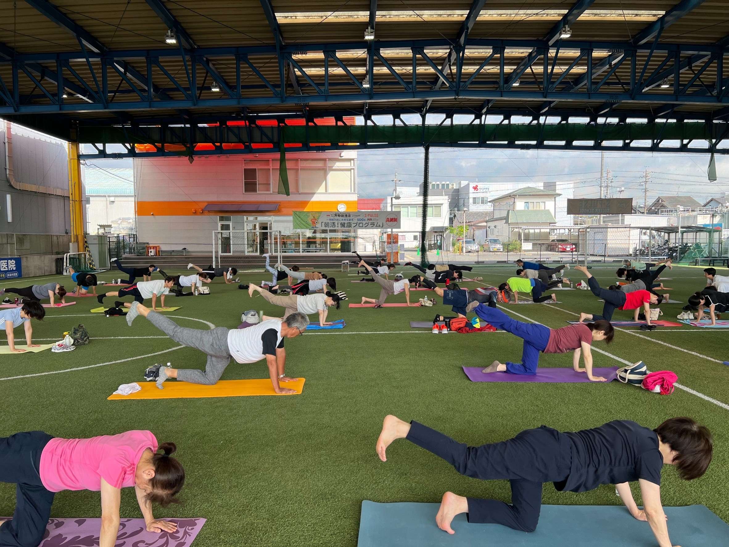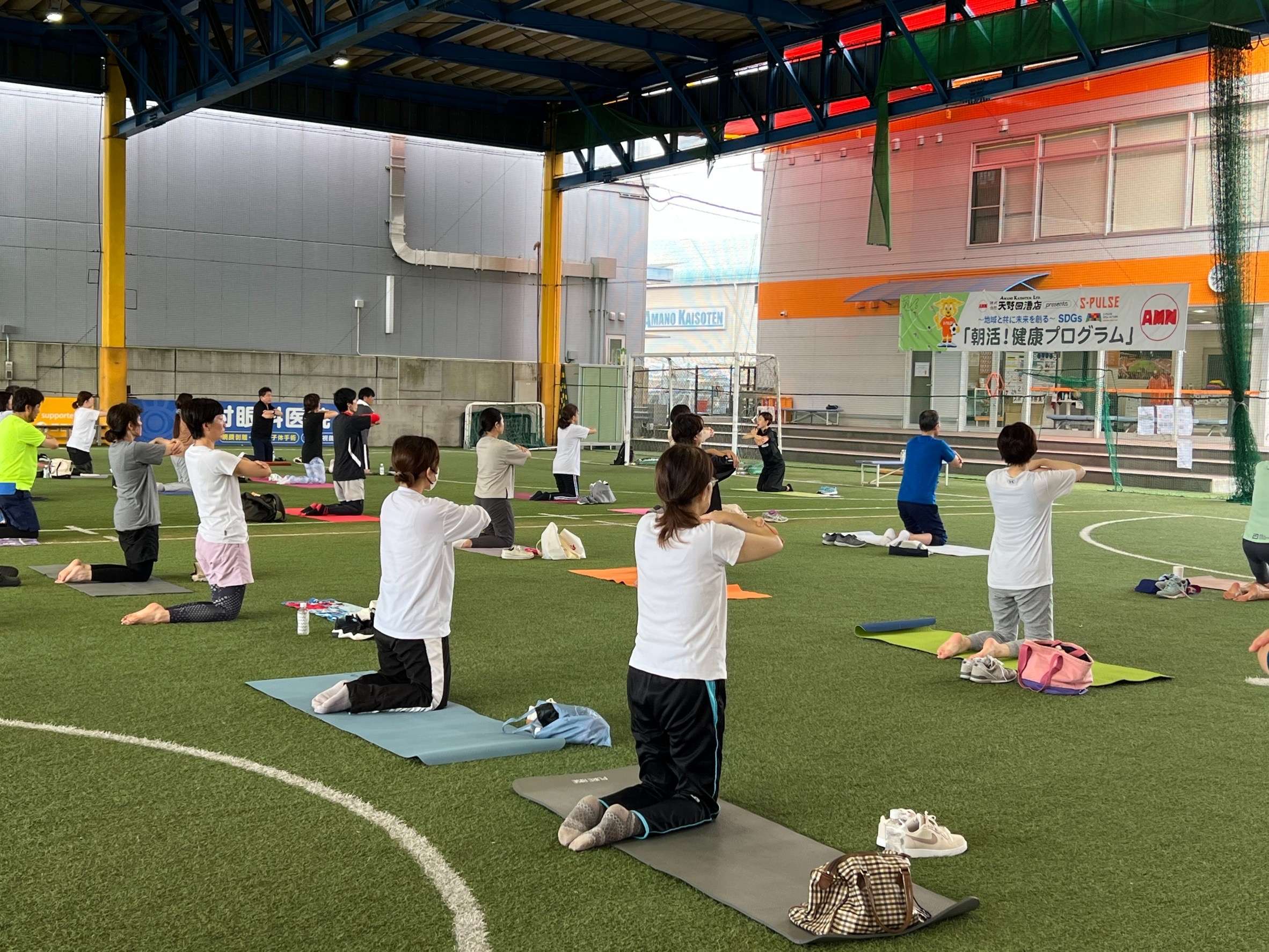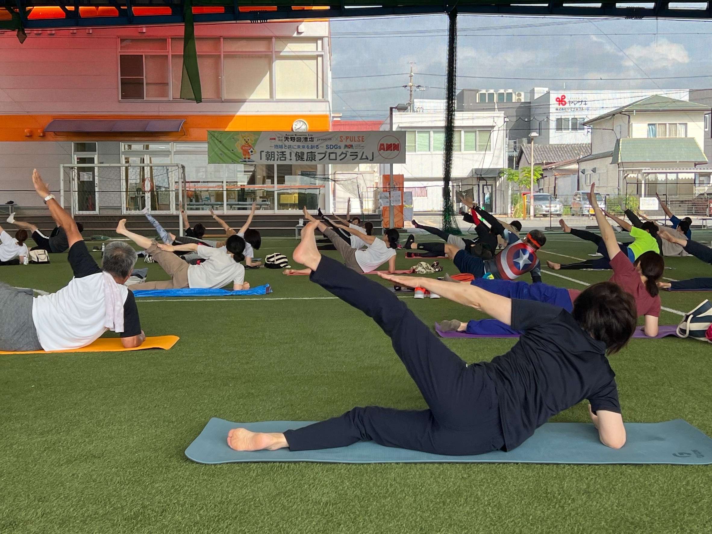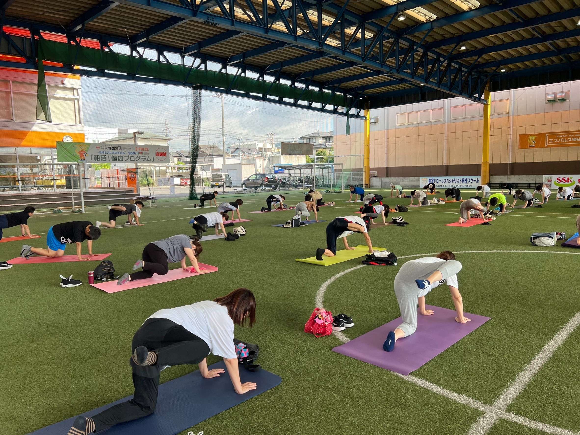 「ピラティスコース」を、7月27日(土)7時30分より、エスパルスドリームフィールド清水にて開催し、52名の皆様にご参加いただきました。