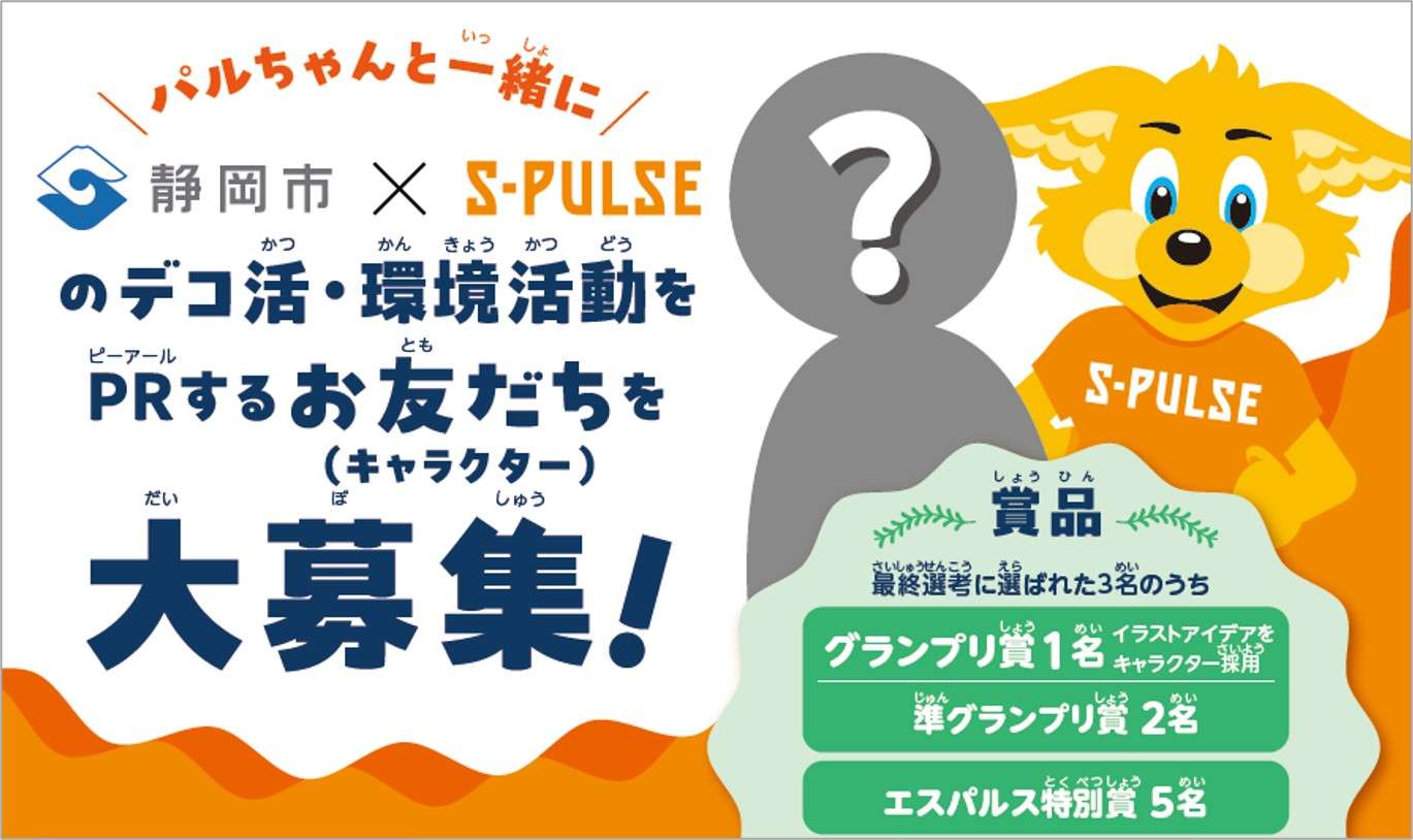 本活動の一環で、『\パルちゃんと一緒に/ 静岡市×エスパルスのデコ活・環境活動をPRするお友だち(キャラクター)大募集』企画を実施しますのでお知らせします。