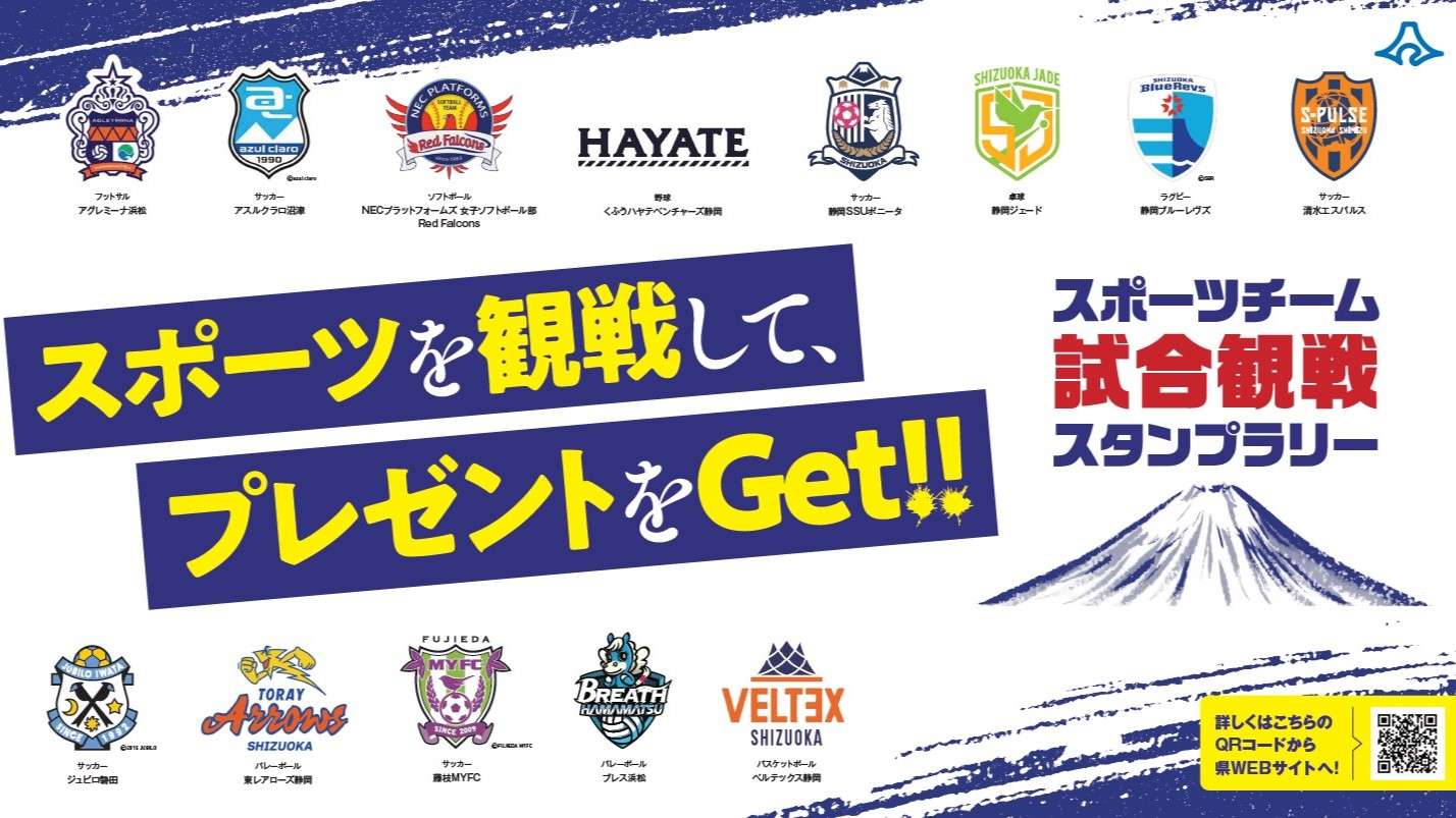 静岡県では、県内スポーツチームの試合観戦を対象としたスタンプラリーを開催しています。このスタンプラリーは、スポーツチームの試合会場がスタンプ獲得スポットになっており、3チームの試合を観戦すると、県内の飲食店や宿泊施設等で使用できる電子マネー、「TIPSポイント」1000円分のプレゼントがあります!静岡県には、エスパルスをはじめ、たくさんのスポーツチームがあります。お得に色々なスポーツを観戦できるイベントになっていますので、ぜひご参加ください!