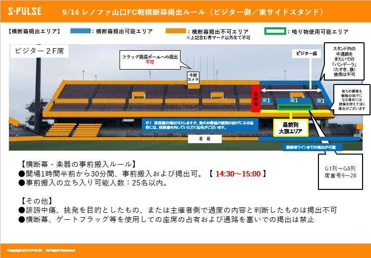 9/14(土)に行われる2024明治安田J2リーグ第31節 レノファ山口FC戦(16:00開場/18:30キックオフ@IAIスタジアム日本平)は、感染症対策をふまえ下記の方針・観戦方法(運営プロトコル)にて開催いたします。
