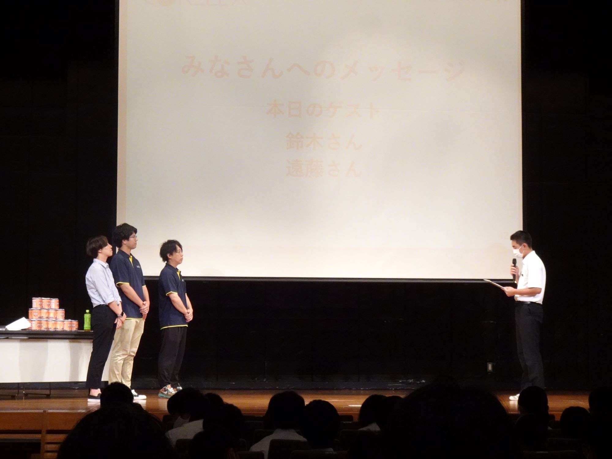 そして、「仕事をする上で必要な4つのチカラ」を、製造工場で営繕職をされている遠藤さんにお話していただきました。「主体性」「課題発見力」「創造力」「発信力」の大切さについて、仕事のどのような場面で必要なのかを含め、ていねいに伝えてくれました。その後の質問コーナーでは、「なぜその職業についたのですか」「眠くなってしまったときはどうしますか」など、仕事に関する質問が多くあがりました。「勉強が嫌いなのですが、どうしたらよいか」という質問に対しては、「まずは好きな教科や自分の興味があるものを見つけること。どんなことが将来の自分につながっていくか今はわからないから、いろんなことを頑張ってみてほしい」と力強いメッセージを送ってくれました。最後に代表の生徒さんから、授業の感想とお礼の言葉を受け、授業が終了しました。