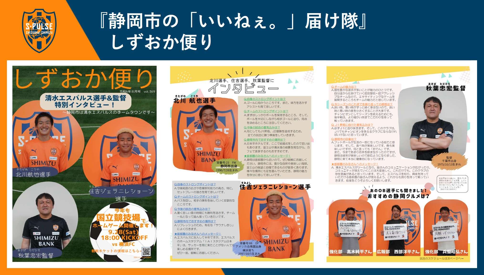 この度、静岡市のことを楽しく盛り上げてくれる、‘‘静岡市のファン”『静岡市の「いいねぇ。」届け隊』へ毎月1回発行される「しずおか便り」にエスパルス選手・監督のインタビューを掲載いただきました。