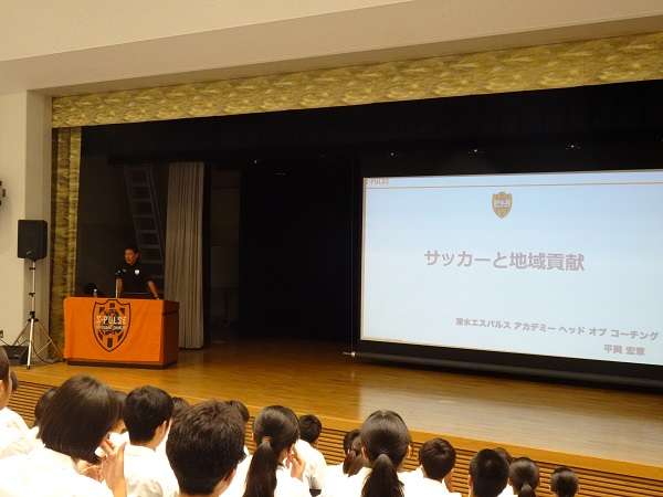 この講演を通して生徒の皆さんが、清水という地域やプロサッカークラブであるエスパルス、所属する選手・スタッフ、そして社会連携に興味を持ってもらえたら嬉しいです。