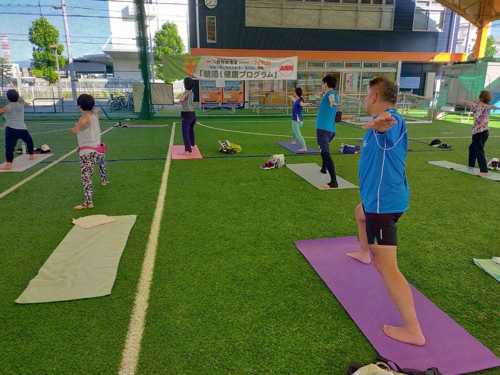 「ヨガコース」を、8月17日(土)7時00分より、エスパルスドリームフィールド静岡にて開催し、39名の皆様にご参加いただきました。