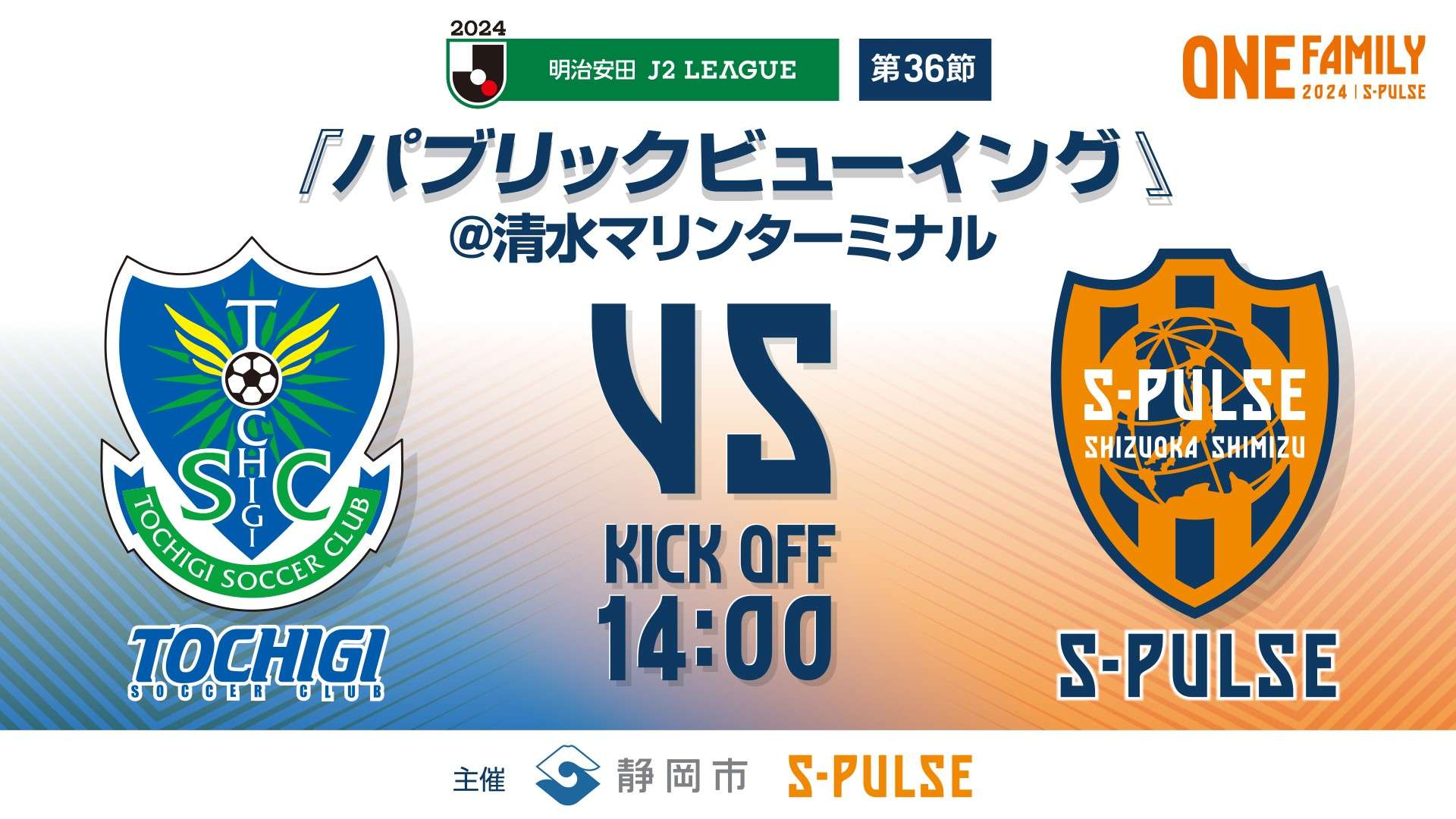 ホームタウン静岡市のエスパルス応援事業の一環と、まちは劇場の推進のため、明治安田J2リーグ 第36節アウェー栃木SC戦のパブリックビューイングを開催いたしますので、下記の通りお知らせします。