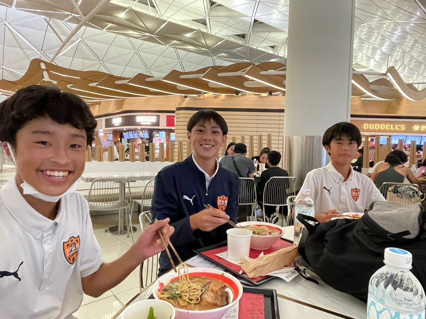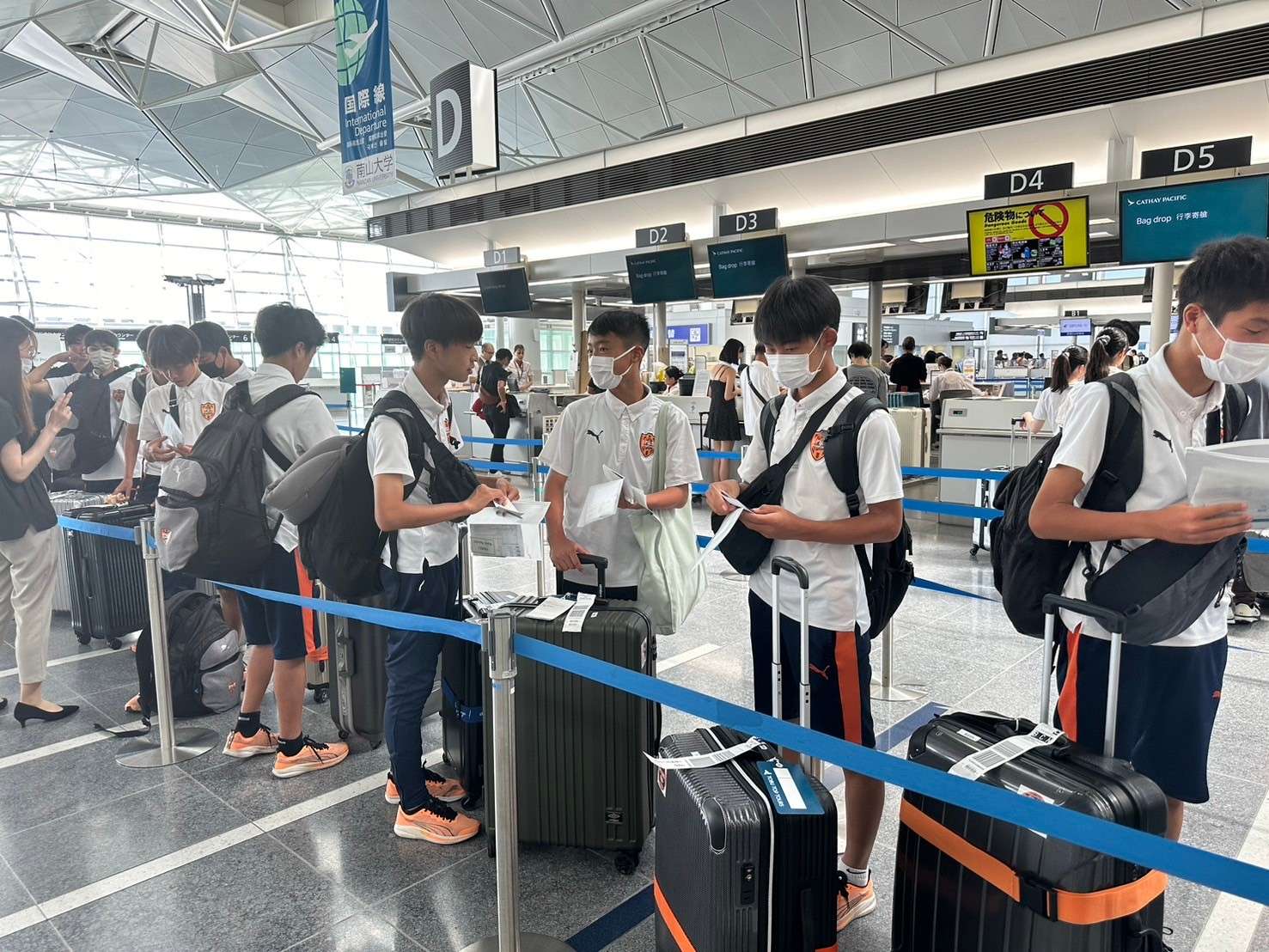20時30分に香港空港に到着しましたが、次のフライトの搭乗ゲートの発表がなかなか行われず、選手たちは空港内で自由時間を過ごしました。多くの選手がフライトスケジュール掲示板を頻繁に確認しながら、搭乗ゲートが発表されるのを待ちました。出発の90分前にようやく搭乗ゲートが発表され、トラムで移動を開始しました。広大な香港空港の規模とトラムの便利さに触れることで、選手たちにとっては移動もまた学びの一つとなりました。