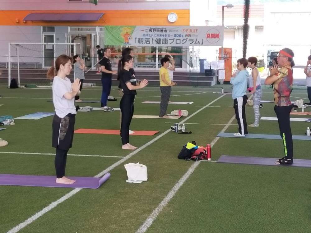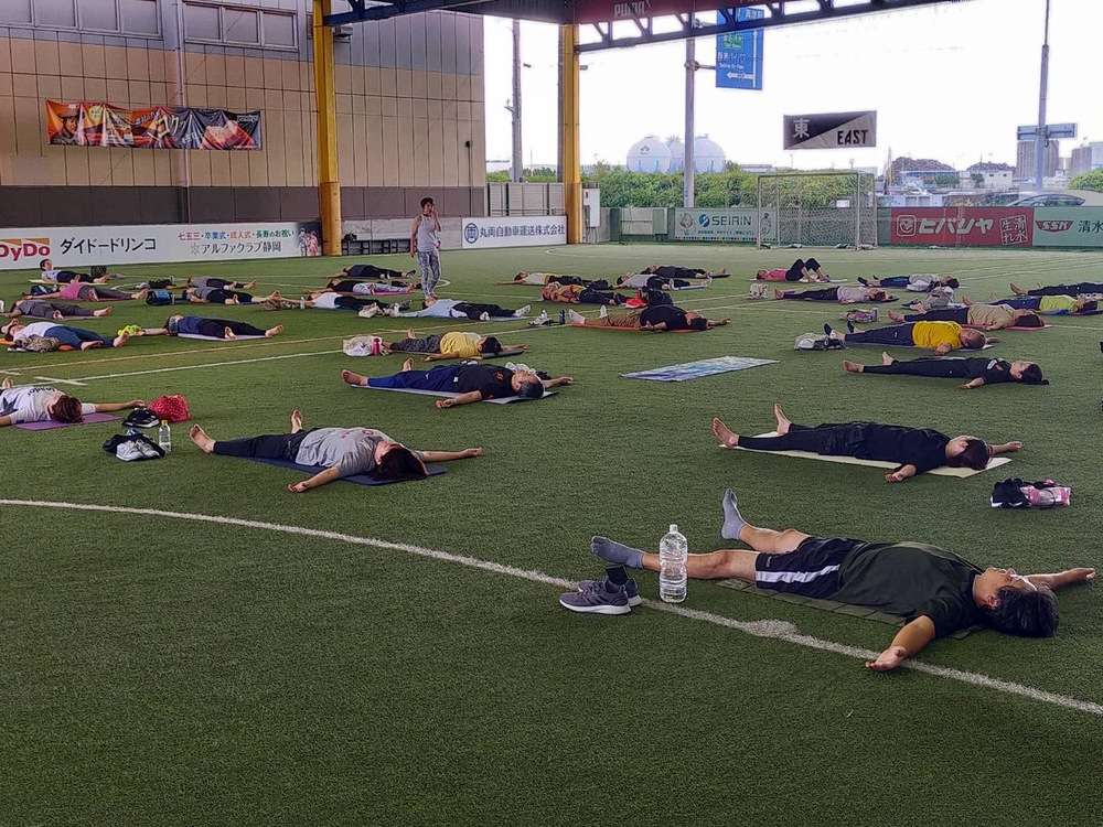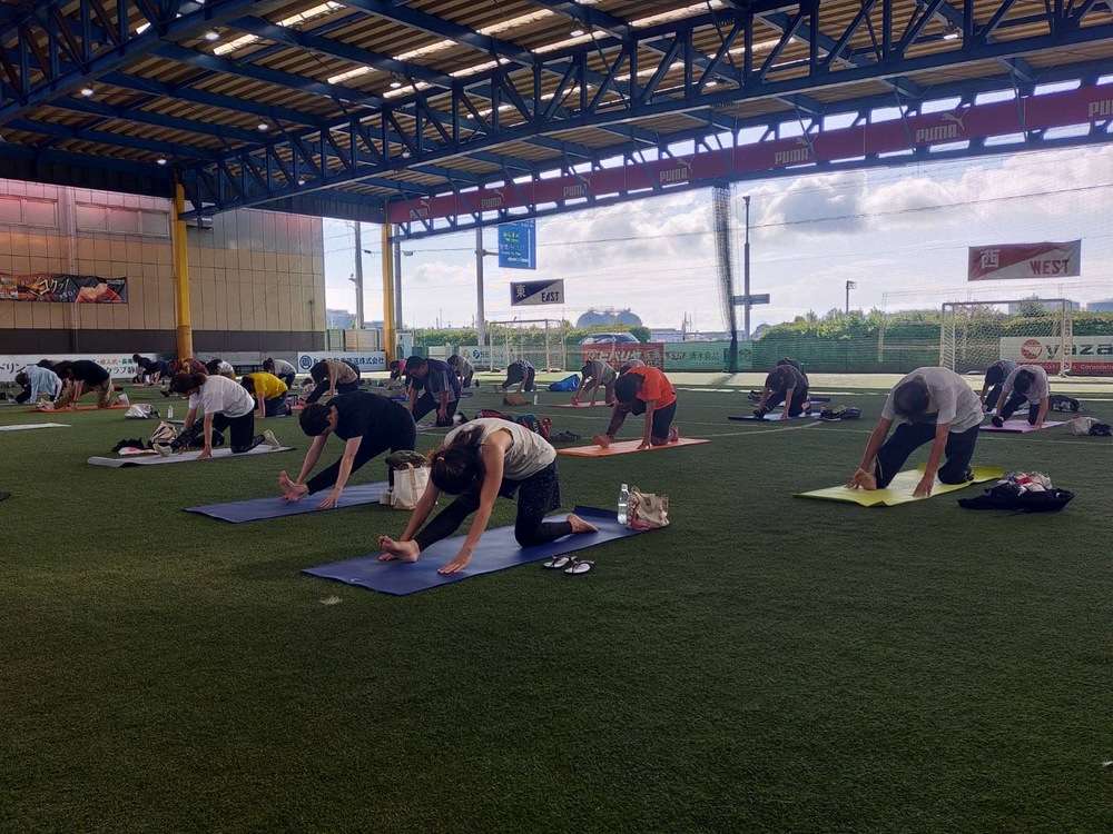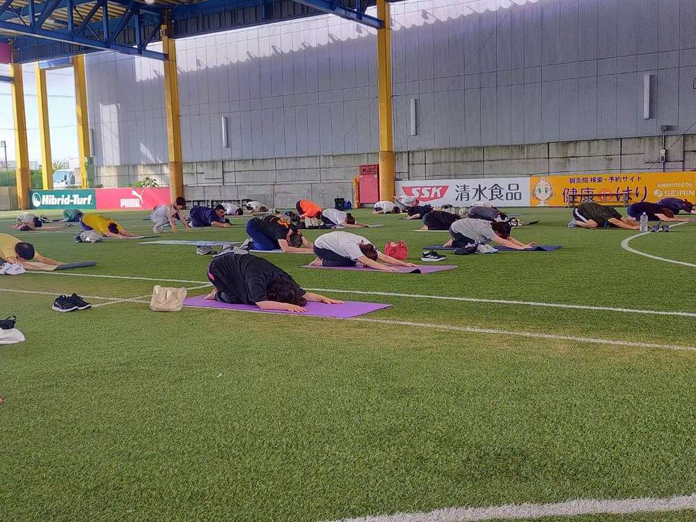 「ヨガコース」を、8月24日(土)7時30分より、エスパルスドリームフィールド清水にて開催し、57名の皆様にご参加いただきました。