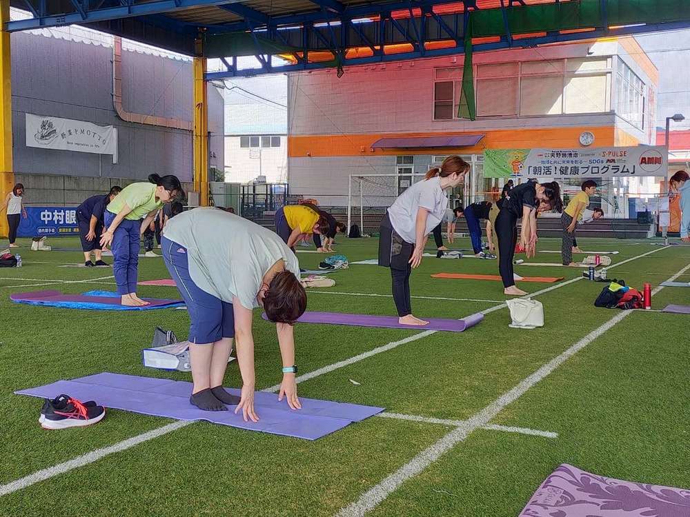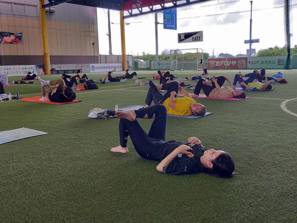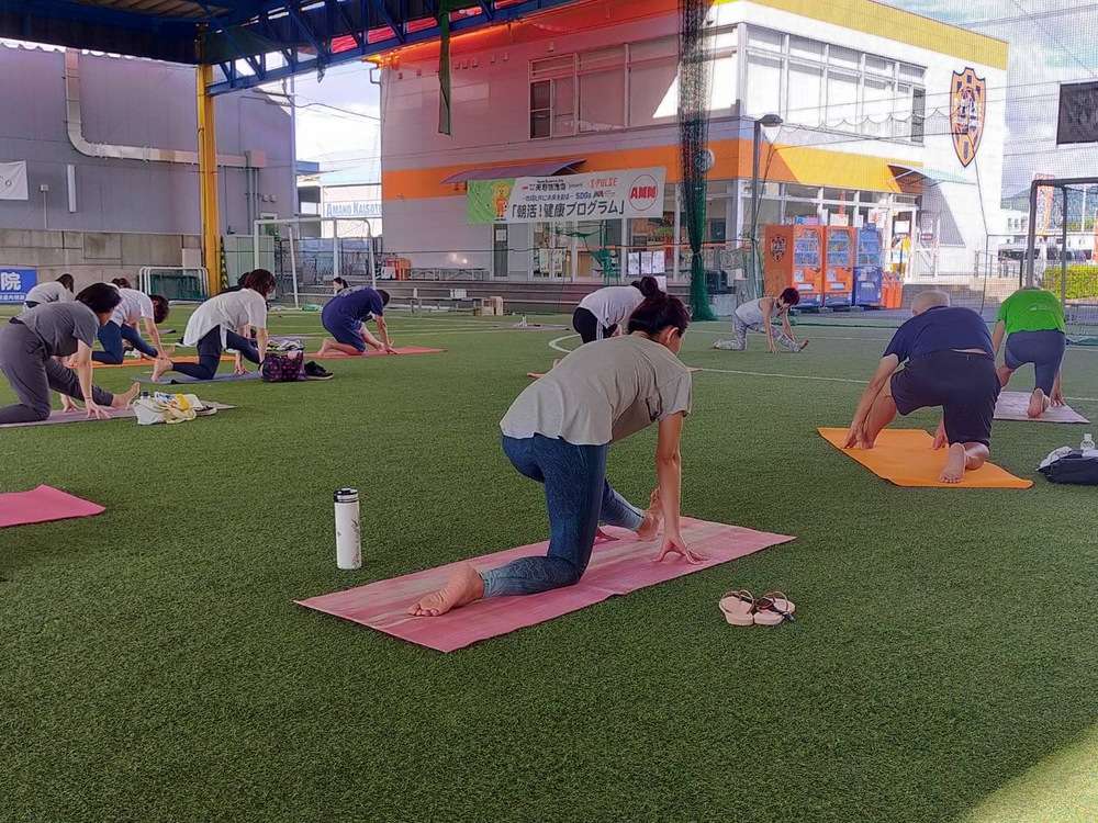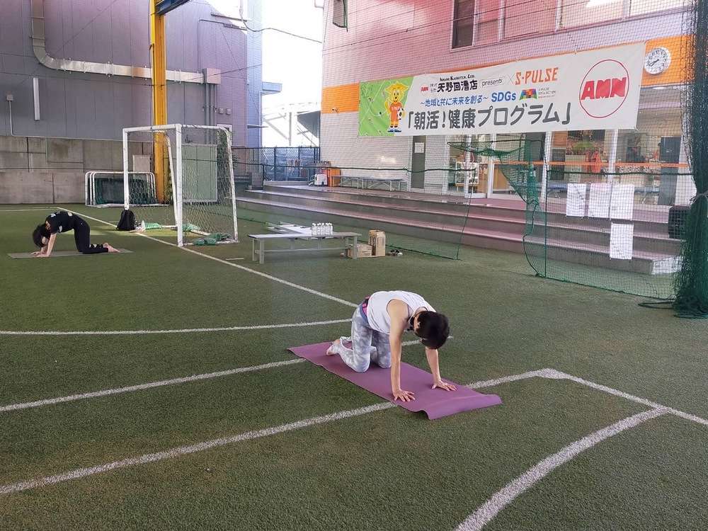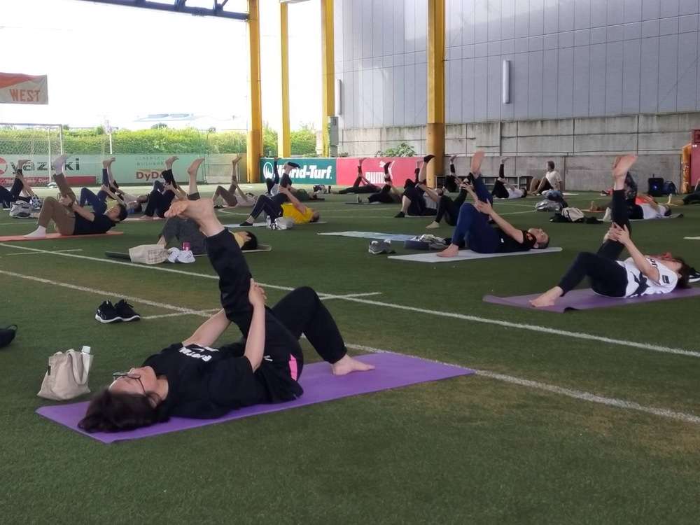 「ヨガコース」を、8月24日(土)7時30分より、エスパルスドリームフィールド清水にて開催し、57名の皆様にご参加いただきました。