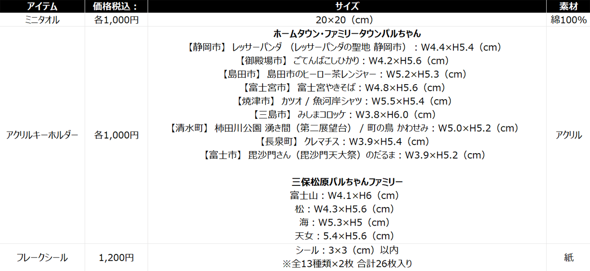 ホームタウン・ファミリータウンパルちゃん、三保松原パルちゃんファミリーグッズ