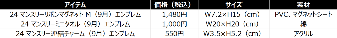 好評販売中の2024オフィシャルユニフォームと季節などをイメージしたマンスリーグッズに9月が新登場!