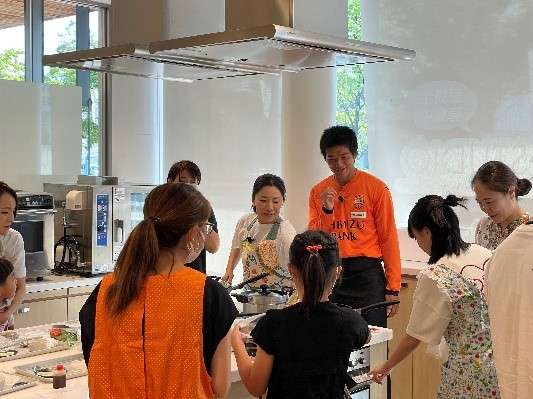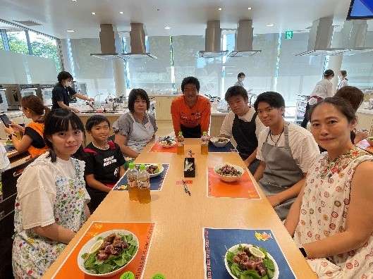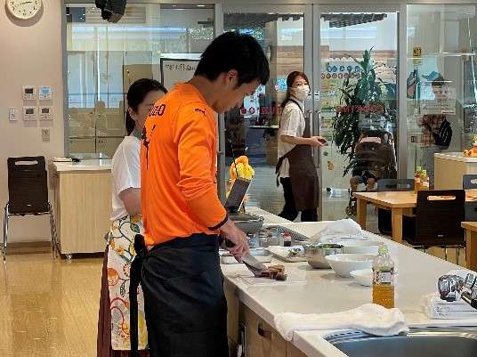 その後、日光水産様ご提供、鰹のステーキ『シーステーキ』を北川選手が調理。参加者の皆様とも一緒に調理し、北川選手がフライパンを握るレアな姿や完成したシーステーキを一緒に食べるなど、和気あいあいとした雰囲気で交流しました。