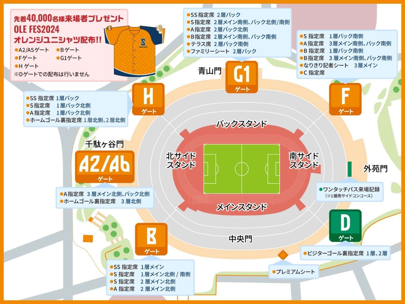 メインスタンドDゲートとCゲートの間にある専用入口からご入場ください。(◆マーク)