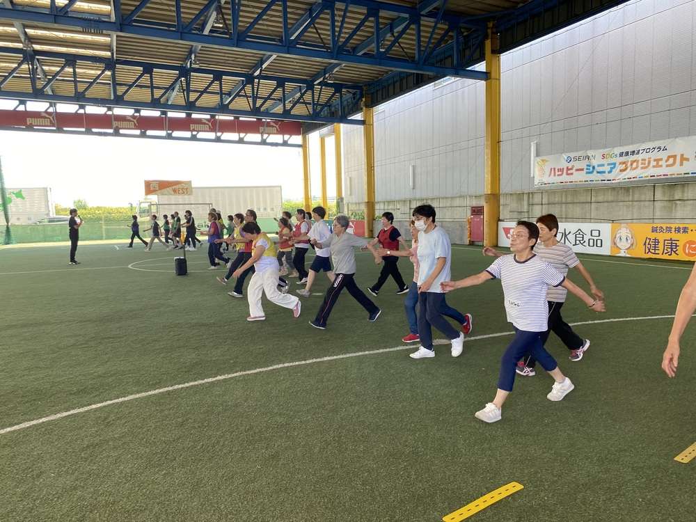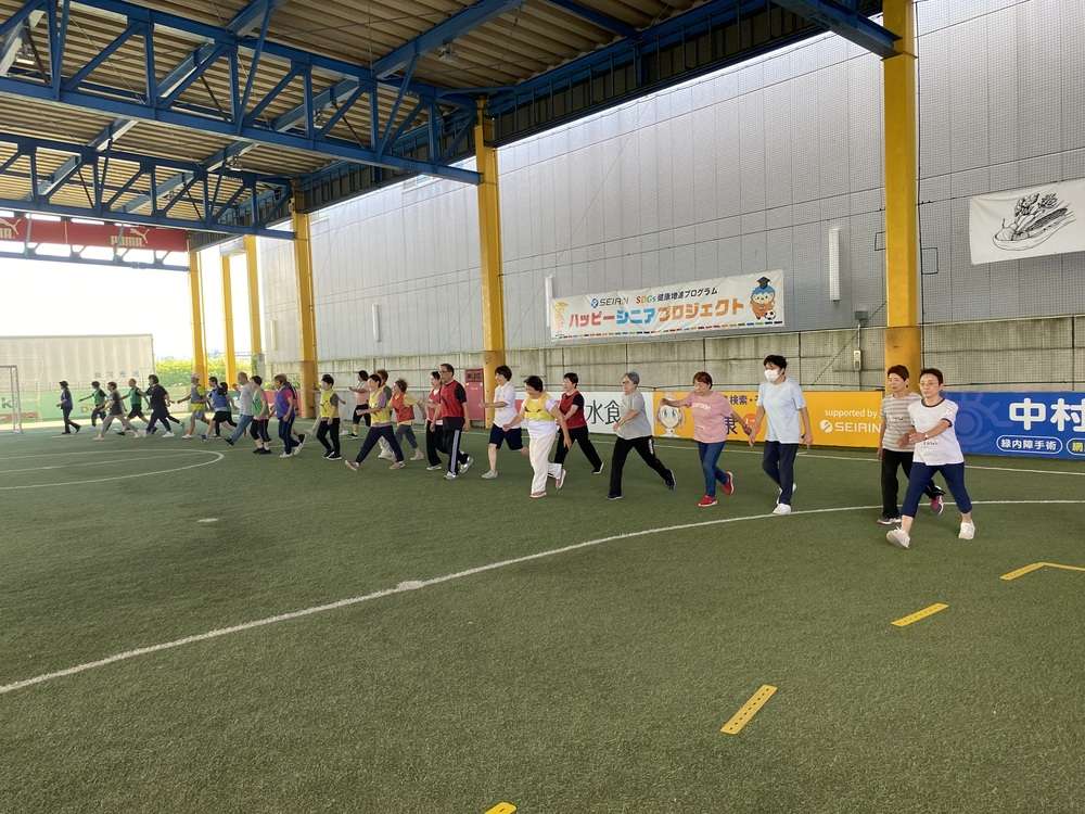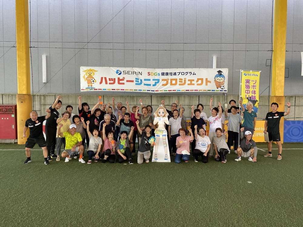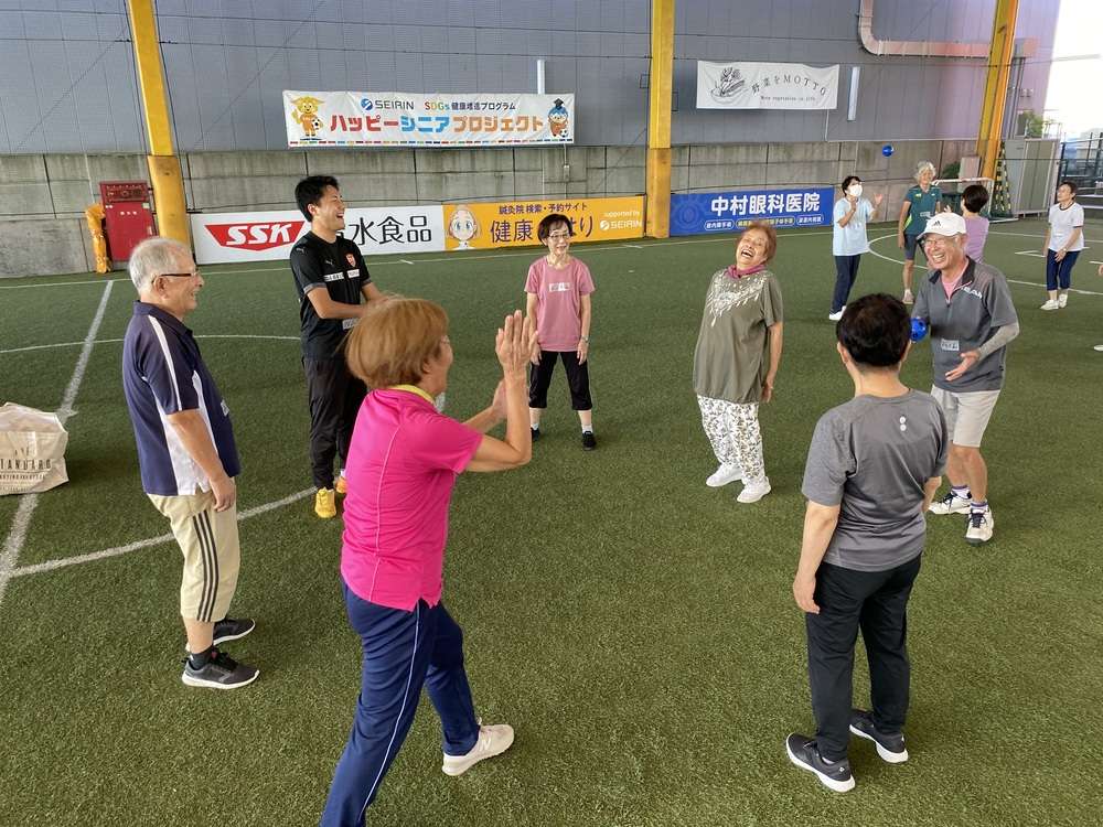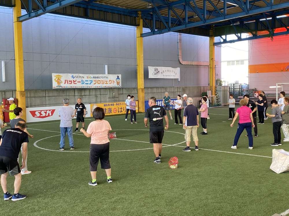 エスパルスドリームフィールド清水(静岡市清水区袖師町)にて、SDGs健康増進プログラム セイリン PRESENTS 「ハッピーシニアプロジェクト」 ~運動とはりで健康に~ 2024年度の5回目を9/20に開催し32名の皆様にご参加いただきました。