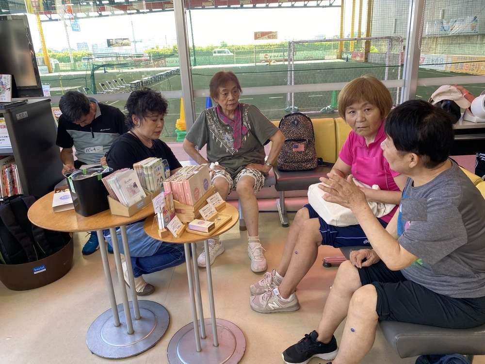 また、鍼灸師によるセルフツボ刺激についてレクチャーを実施し、今回は健脚や消化を改善するツボをセルフケアしました。