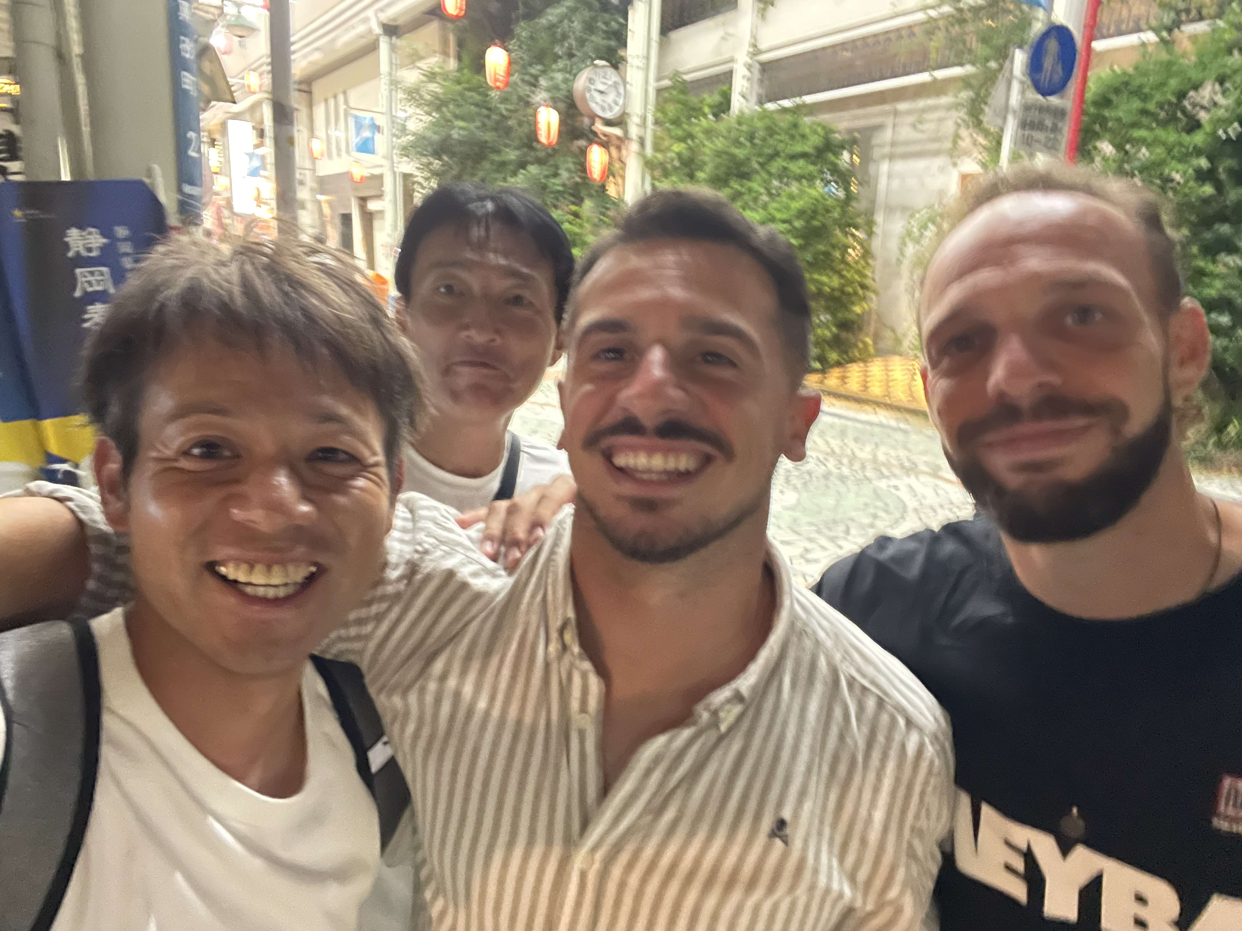 懇親会にて(左からしんコーチ、松尾スクールマスター、ジョアン、マーク)