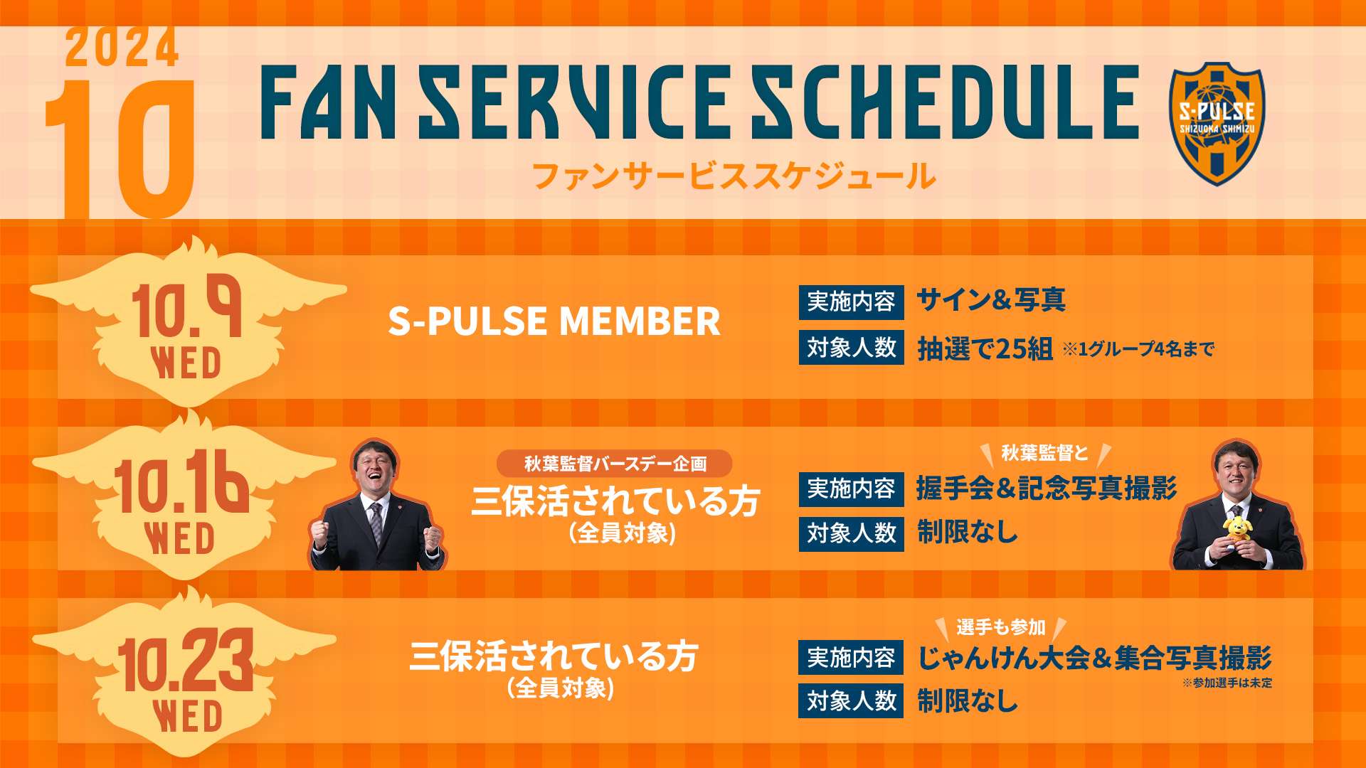 10月実施分のファンサービス詳細につきましてお知らせさせていただきます。