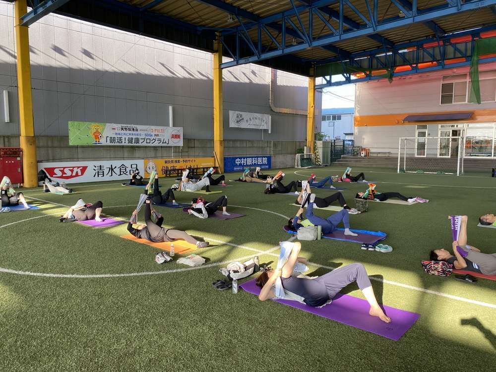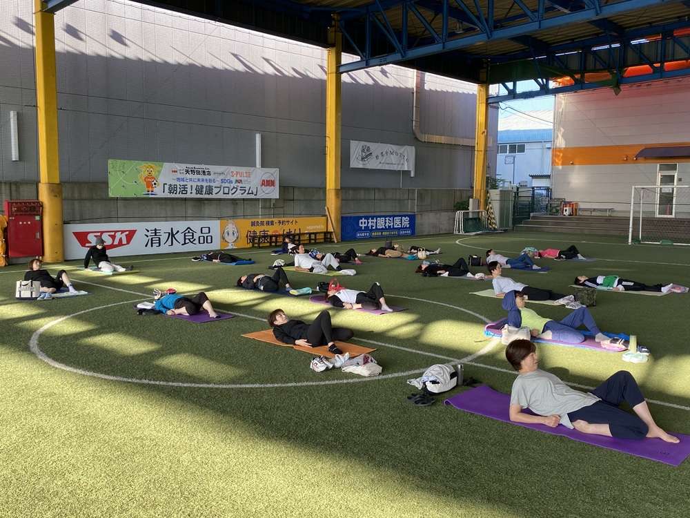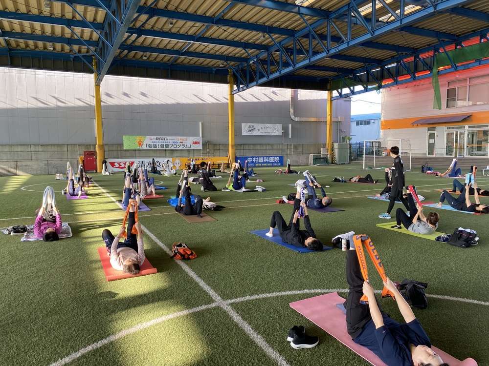 「骨盤トレーニングコース」を、10月12日(土)7時30分より、エスパルスドリームフィールド清水にて開催し、49名の皆様にご参加いただきました。