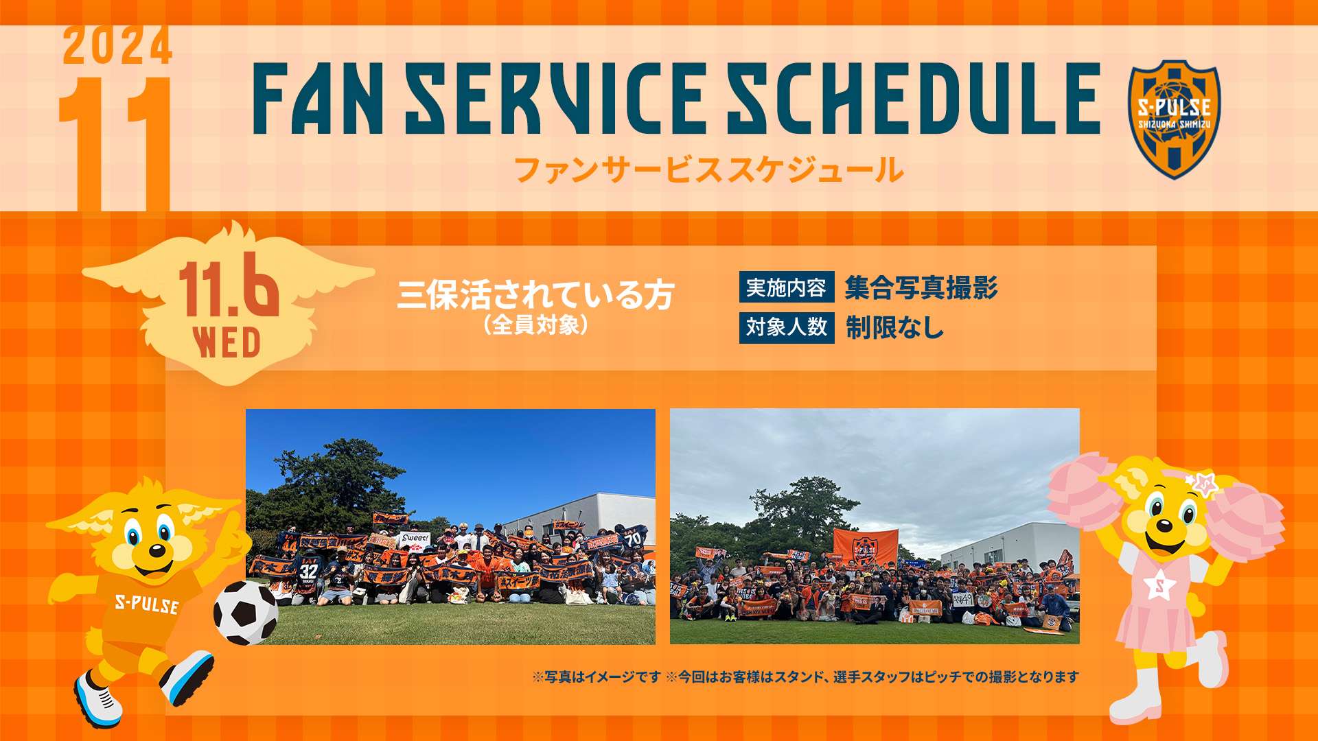 ファンサービスは、練習後に「実施対象」「実施内容」を設けた上で、指定日のみでの実施とさせていただきます。ファンサービスの「実施日」「実施対象」「実施内容」は事前にエスパルス公式ホームページにてお知らせをいたします。