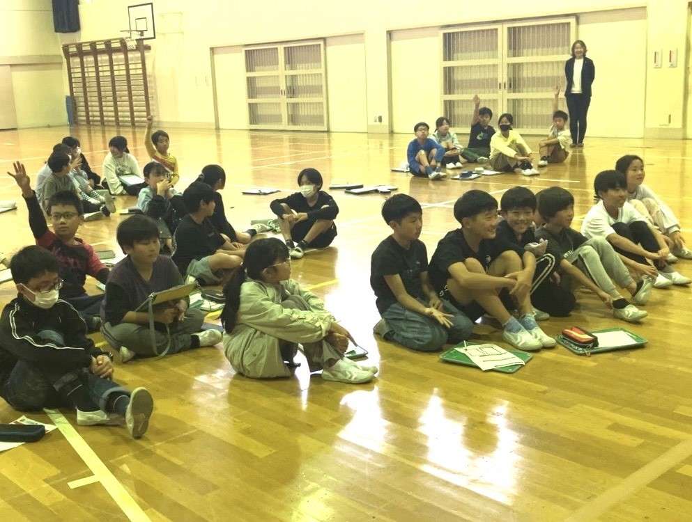 最後に選手への質問コーナーでは、「小学生のとき、どれくらい練習をしていましたか」「サッカーをしていて一番嬉しかったことはなんですか」「毎日何時間くらい寝ていますか」「憧れの選手はいますか」など、児童からたくさんの質問があがりました。