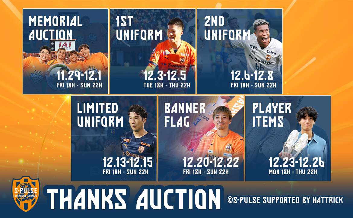 本企画による収益は、来季J1リーグにてエスパルスファミリー皆様とより一体となり選手たちを後押しできるよう、来季の試合運営におけるサービス向上に活用させていただきます。