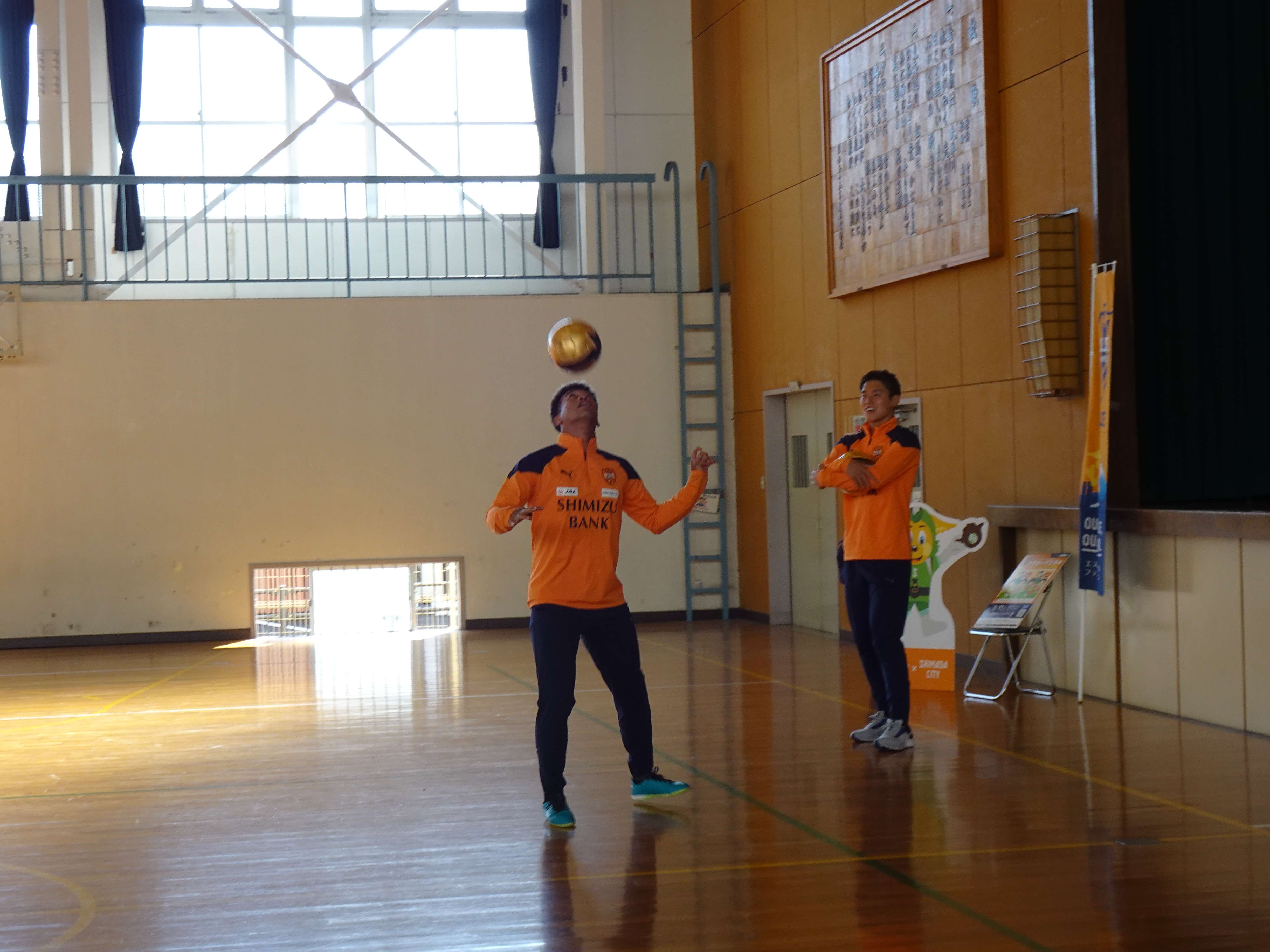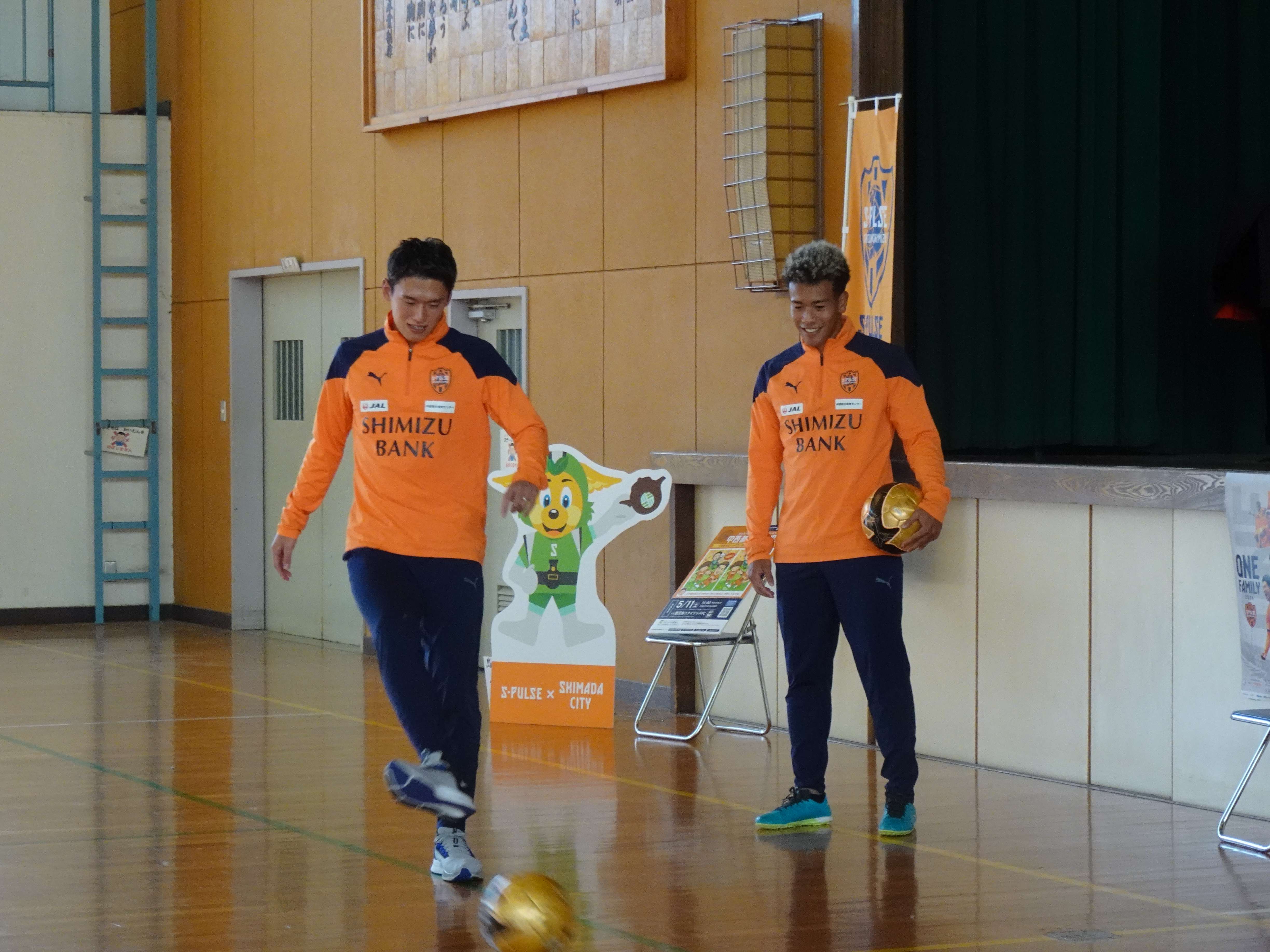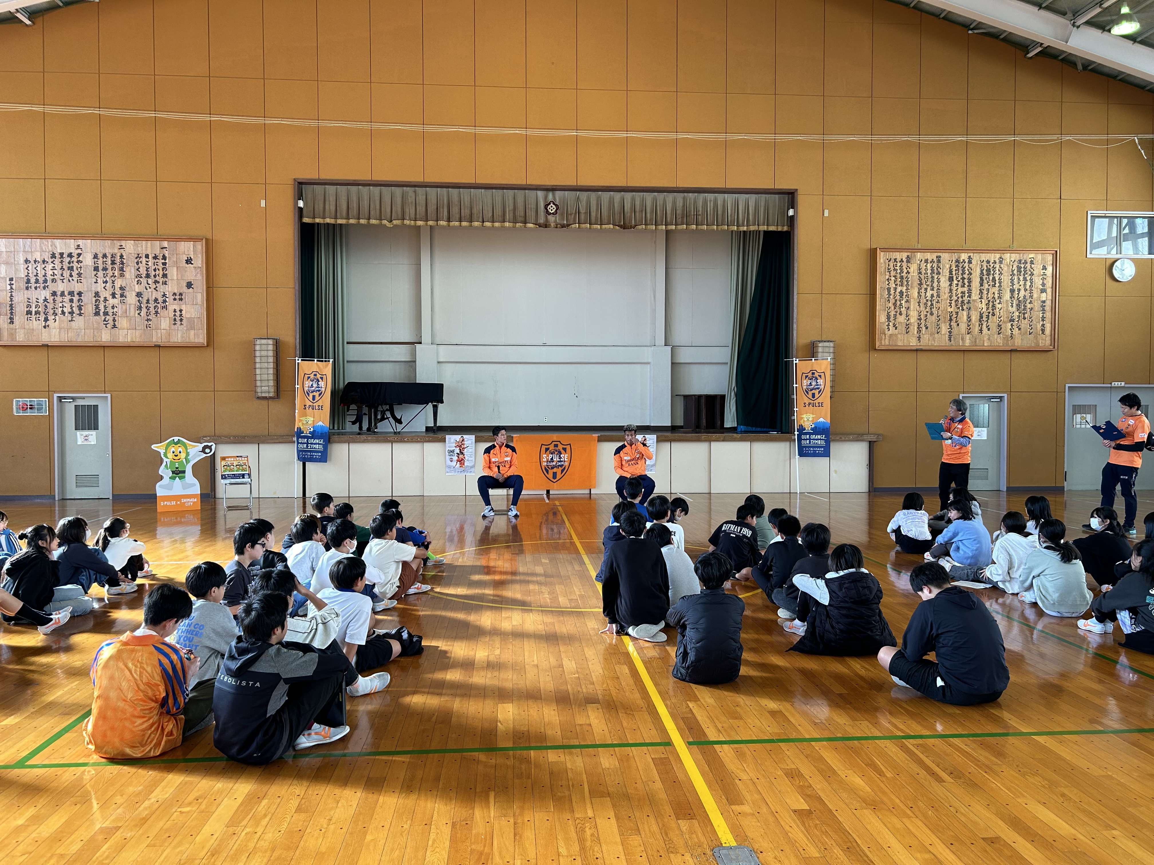 エスパルスが実施したホームゲーム招待企画『中西部小学生招待事業』(トップパートナー: サカイ産業株式会社)(パートナー:山内木材産業株式会社、株式会社ODOROKI、不二高圧株式会社、株式会社ヤマシタ)の御礼企画として、11月27日(木)に沖悠哉選手と住吉ジェラニレショーン選手がファミリータウン島田市の島田市立島田第二小学校小学校(6年生61名)を訪れ、交流を深めました。
