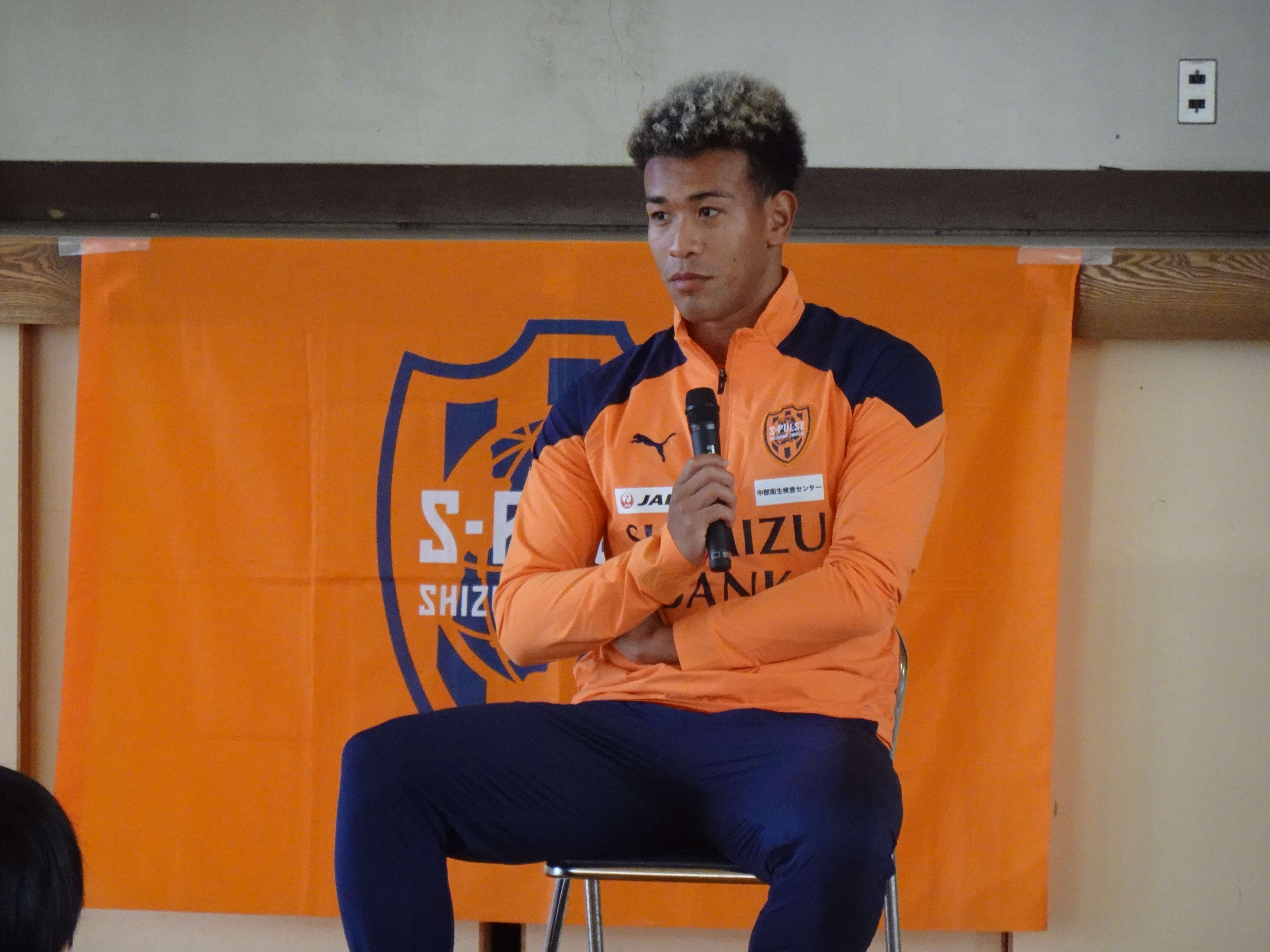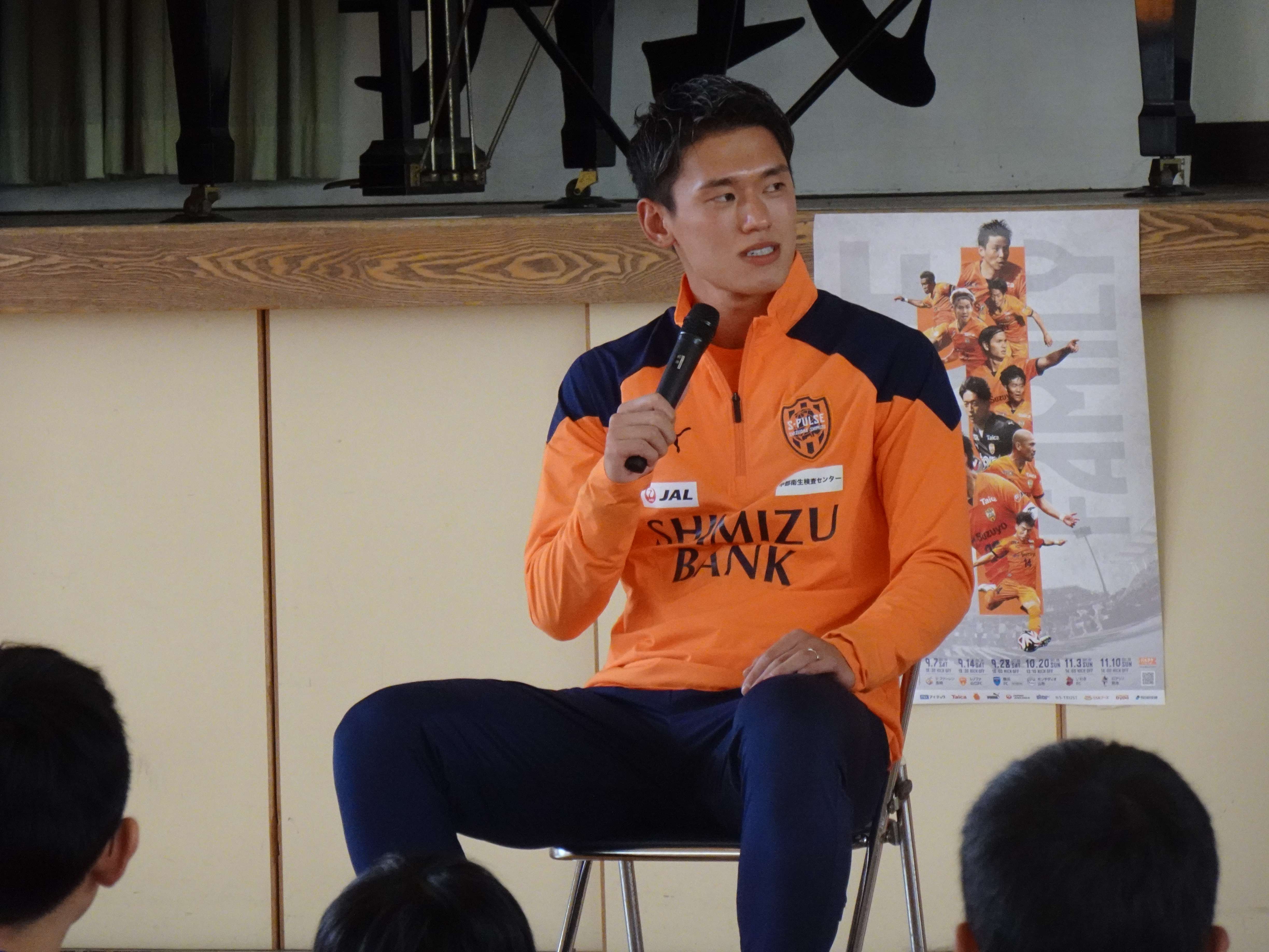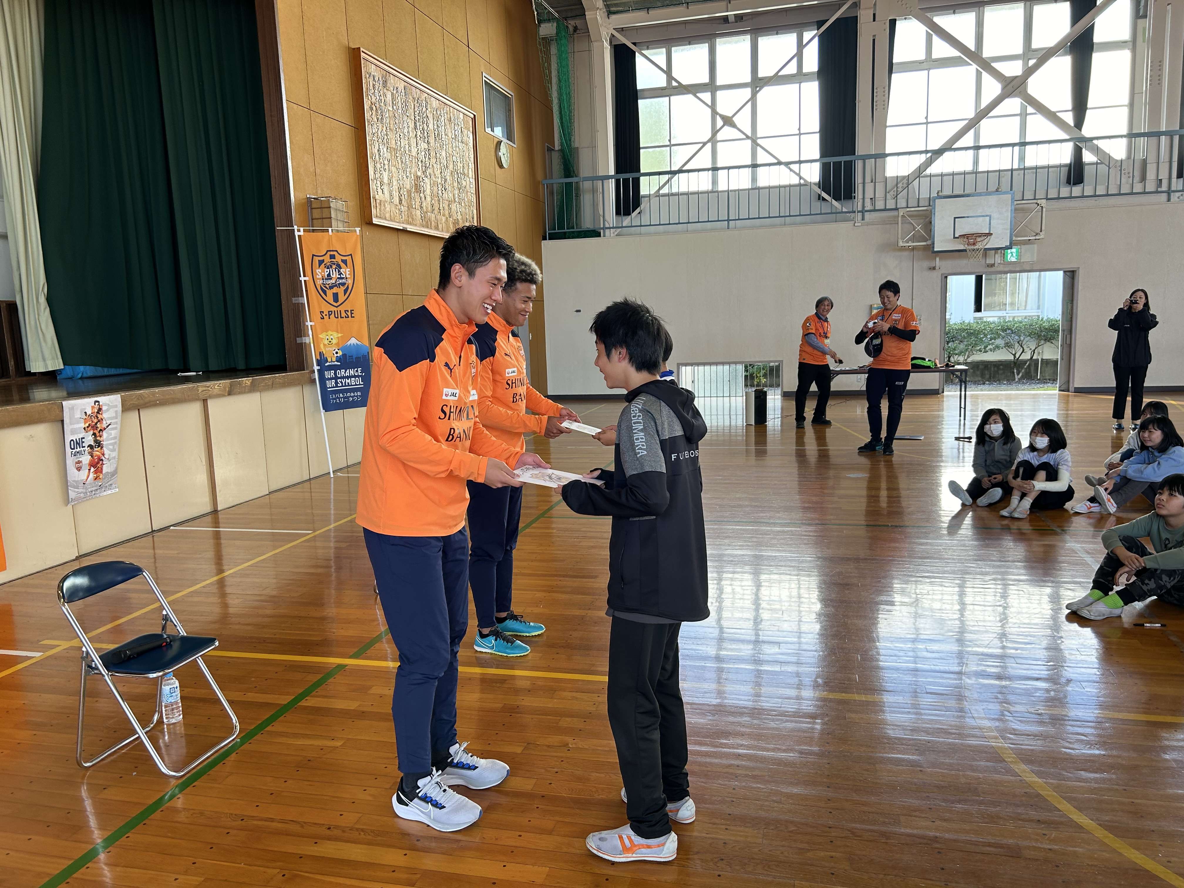 エスパルスが実施したホームゲーム招待企画『中西部小学生招待事業』(トップパートナー: サカイ産業株式会社)(パートナー:山内木材産業株式会社、株式会社ODOROKI、不二高圧株式会社、株式会社ヤマシタ)の御礼企画として、11月27日(木)に沖悠哉選手と住吉ジェラニレショーン選手がファミリータウン島田市の島田市立島田第二小学校小学校(6年生61名)を訪れ、交流を深めました。