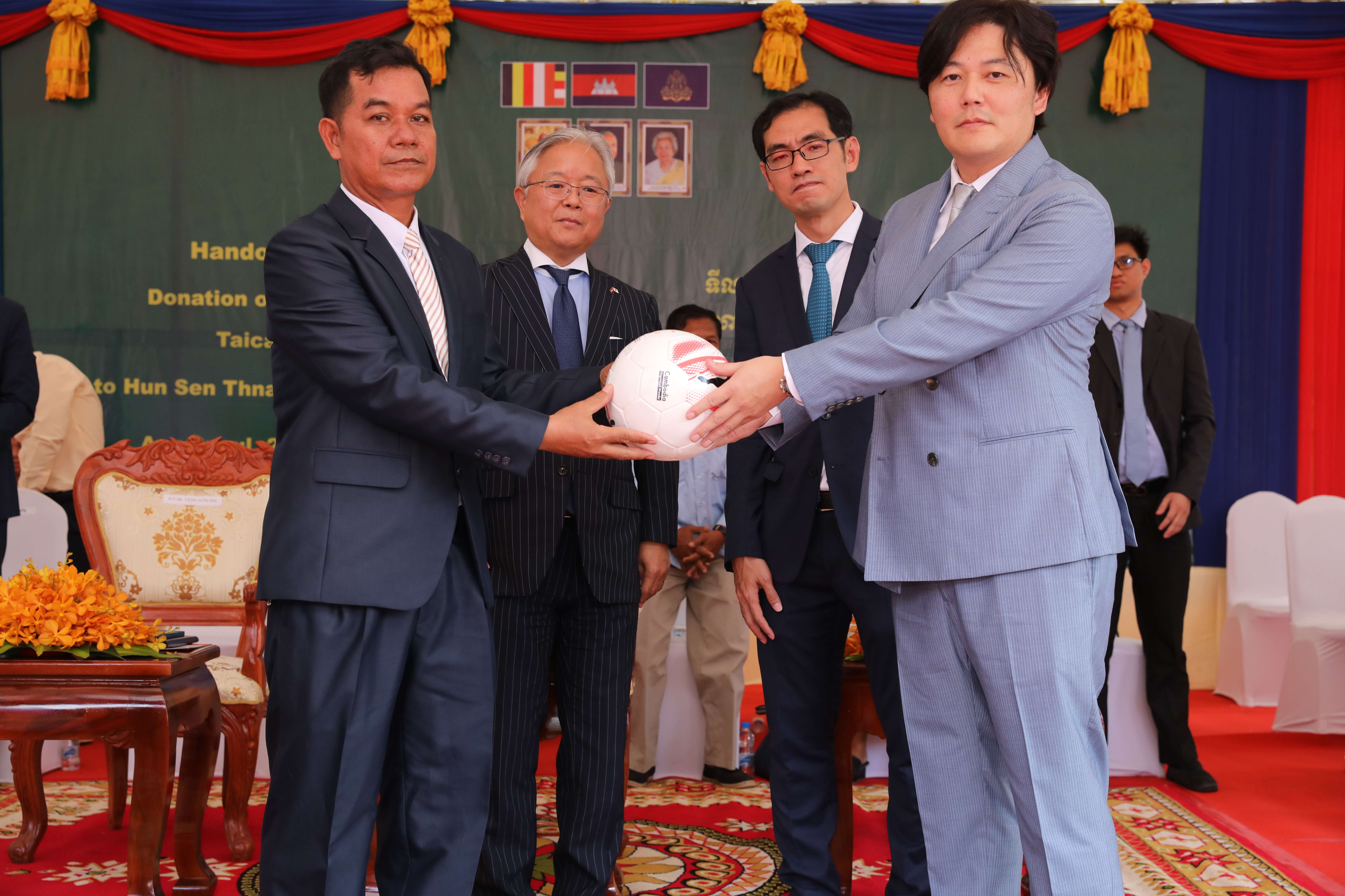 このたび、11/27(水)にタイカ様がカンボジア国内でのサステナビリティ活動(地域貢献活動)の一環として、プノンペンにあるHun Sen Thnal Tortoeng High School(フン・セン・トナル・トートゥン高校)に40個のサッカーボール寄贈を実施いたしました。