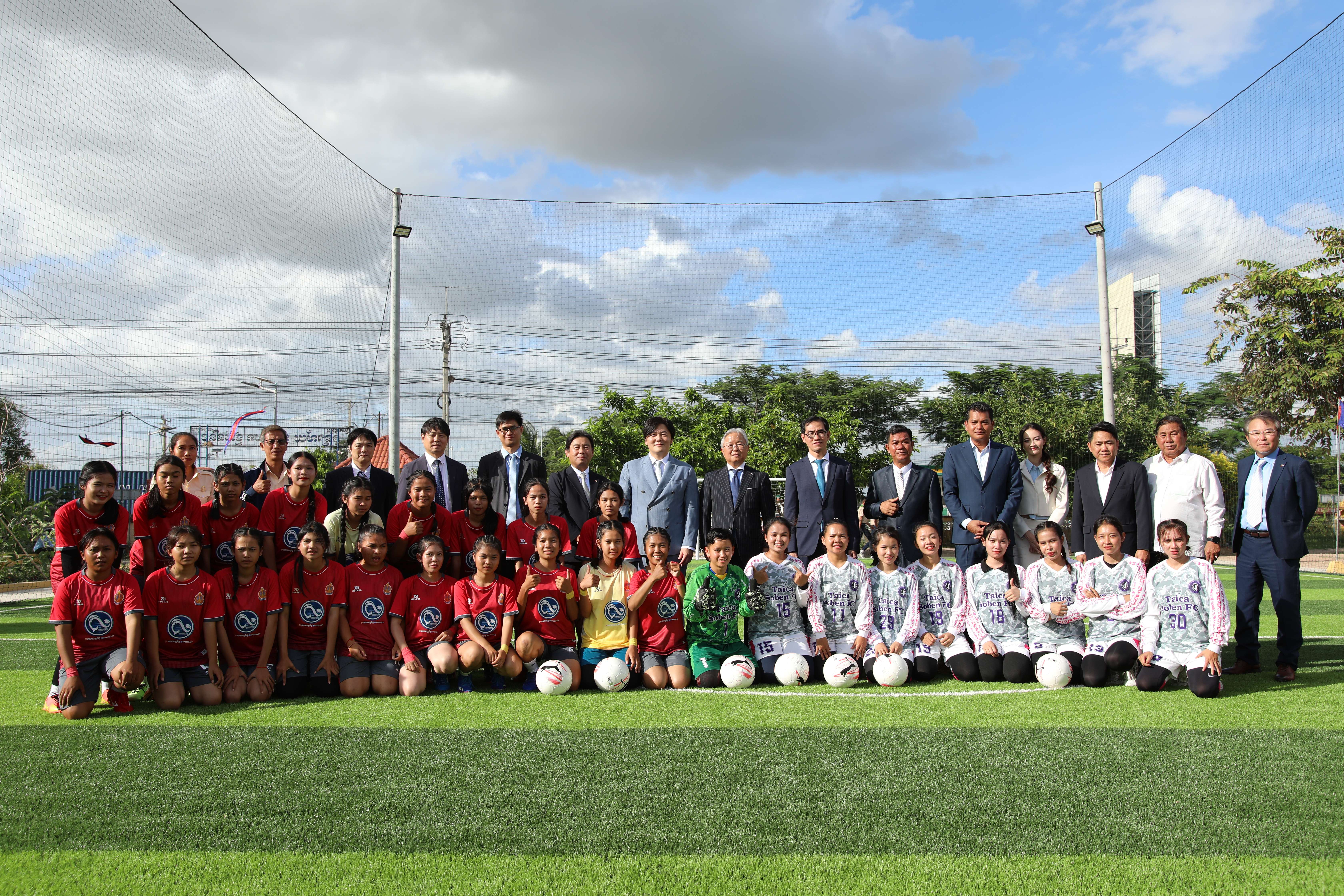 今回寄贈したサッカーボールとフットサルコートが子供たちの今後の成長に寄与することを祈念しながら、式典後には女子サッカーチームTaica Sobenと学生チームで親善試合が行われ、熱気と喜びに溢れたひと時になりました。