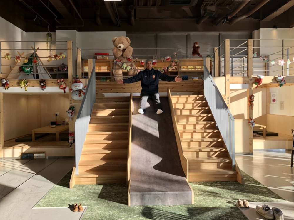 親子で行う運動遊びでは、木登りやトンネル、バンブージャンプに挑戦。