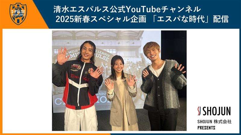 2025年新春スペシャル企画として、清水エスパルス公式YouTubeチャンネルにて、スポーツキャスターの中川絵美里さん、俳優の宮澤佑さん、俳優の相馬理さんに対談企画にご参加いただき、「エスパな時代」と題した動画を配信します。1月2日(木)に前編、3日(金)に後編を配信しますので、ぜひご覧ください。