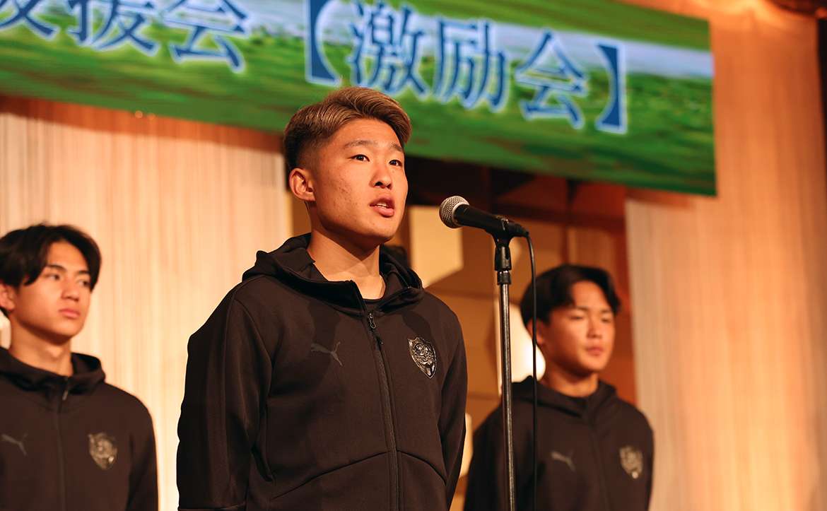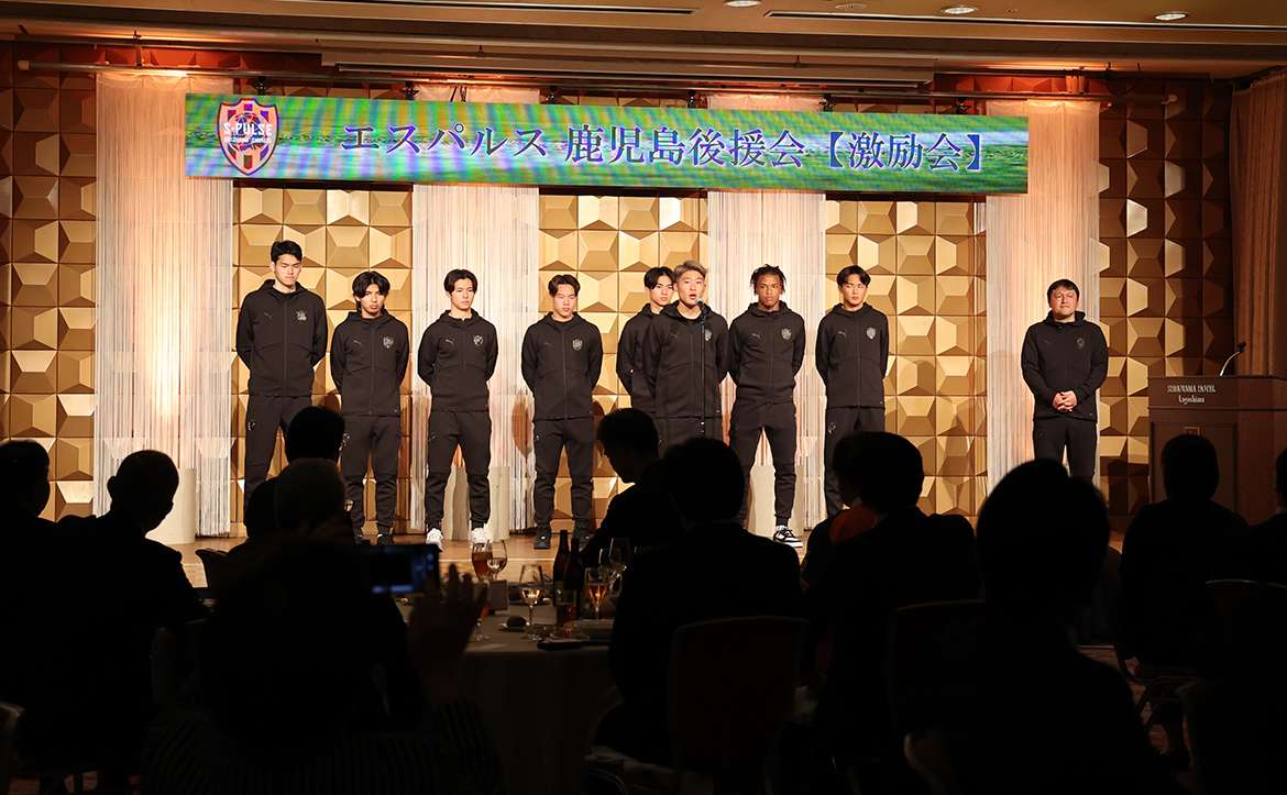 また、夕食後には、城山ホテル鹿児島にて、エスパルス鹿児島後援会 激励会が行われた。激励会には秋葉忠宏監督をはじめ選手10名が参加し、秋葉監督と、選手を代表して宇野禅斗が挨拶をした。最後に会場にお集まりいただいた方々と記念撮影を行い、皆さまの拍手で送られ会場を後にした。