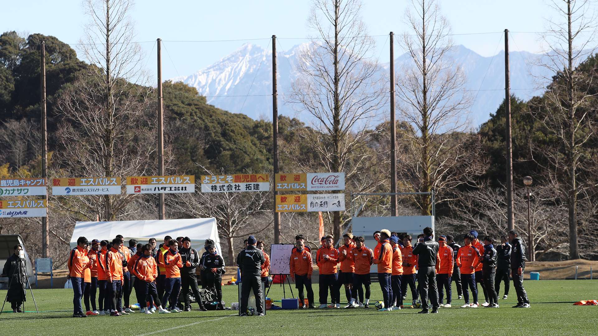 4日ぶりに快晴に恵まれた「鹿児島ふれあいスポーツランド」。磐田とのトレーニングマッチを2日後に控えた今日は、当初の2部練習から午前練習のみに変更となり、約1時間半、穏やかな気候の中で汗を流した。