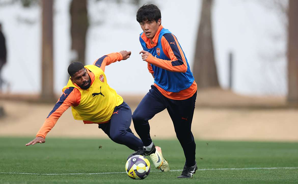 (今日の紅白戦で感じた課題は)ゴール前の寄せのところ。やはり上のカテゴリーの選手たちは全部決めてくるので、もっと寄せるなり身体を張るなりしないといけないと思う。そういう意味では、エスパルスにはレベルの高いFWの選手がいるので、日々のトレーニングから良い練習になる。