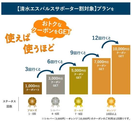 エントリー後、対象プランを使えば使うほどおトクなクーポンをゲットできる新サービスです。ぜひ利用して清水エスパルスの応援に出かけよう!