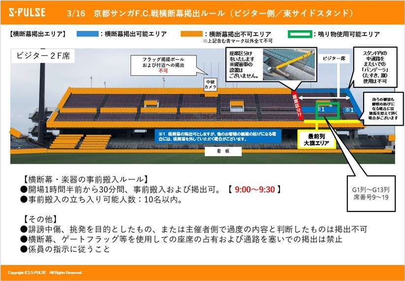 ・ビジターエリア(東サイドスタンド2F指定席の一部)を設置いたします。