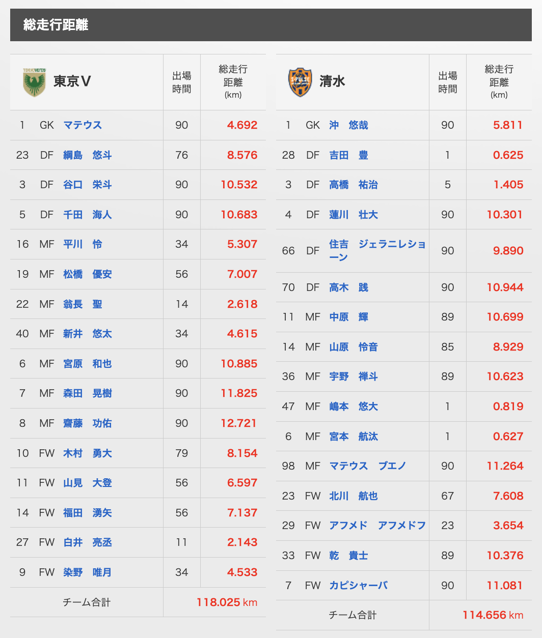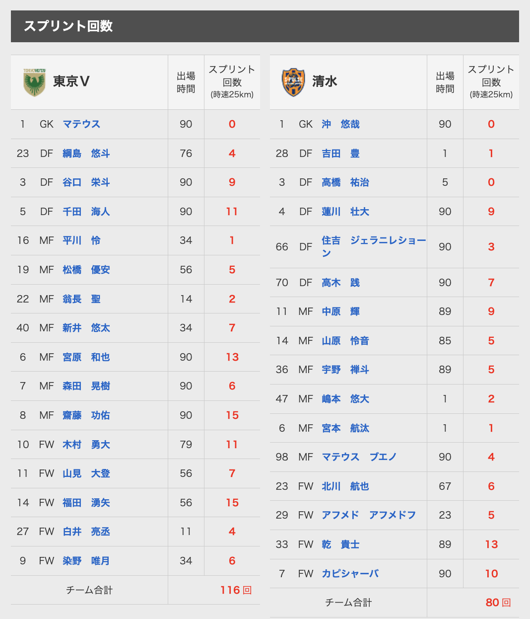 2025年2月16日(日)に行なわれた、明治安田J1リーグ 第1節 vs 東京V@国立 のトラッキングデータは下記の通りです。