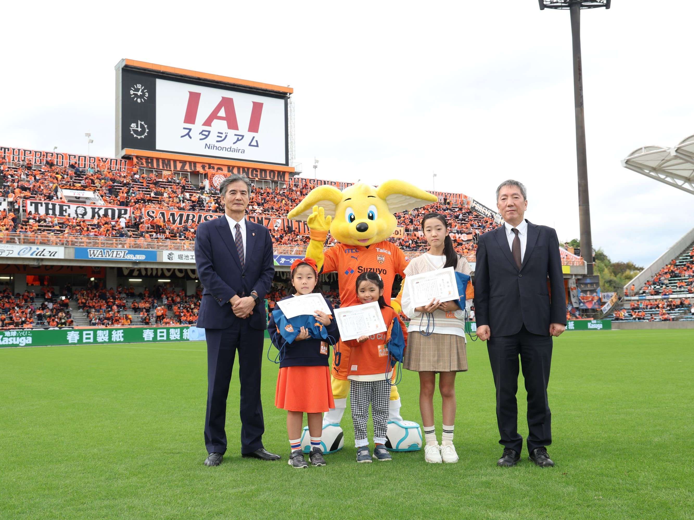 本企画では、エスパルスのパルちゃんと一緒に地球温暖化から未来を守るエコな行動(デコ活)をPRする『静岡らしさ』を取り入れた環境キャラクターデザインを市内の小学生から募集し、333件の応募をいただきました。素晴らしかった3作品から市民投票にてグランプリを決定し、昨年11月3日(日)いわきFC戦では各賞に輝いた皆様の表彰式を行いました。この度、グランプリのキャラクター名が決定し、キャラクターが完成しましたのでお知らせします。今後静岡市とエスパルスの環境啓発活動にて活用していきます。