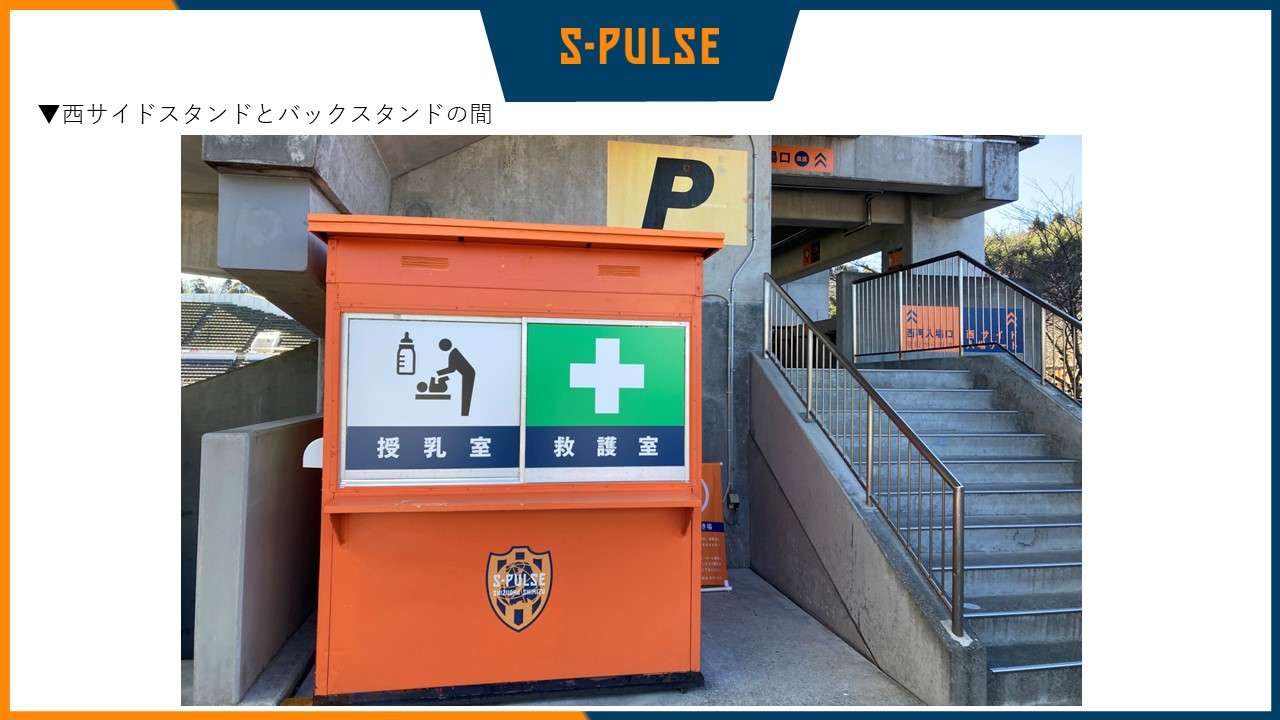 場内、西サイドスタンドとバックスタンドの角のスペースに、授乳室を新設します。