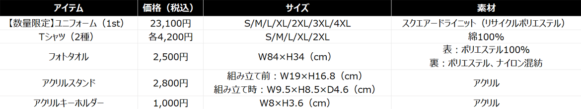 ※ユニフォーム(1st)は数量限定のため、上限に達し次第販売を終了いたします