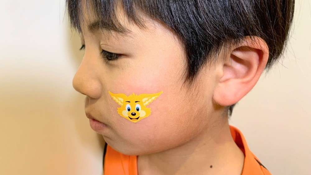 フェイスペイントシールはお子さまから大人まで簡単に貼ることができます!パルちゃん、ピカルちゃん、エンブレム、ロゴのシールを貼って、エスパルスを応援しよう!短時間で、貼ることができます!みんなでテニスコートに集合しよう!
