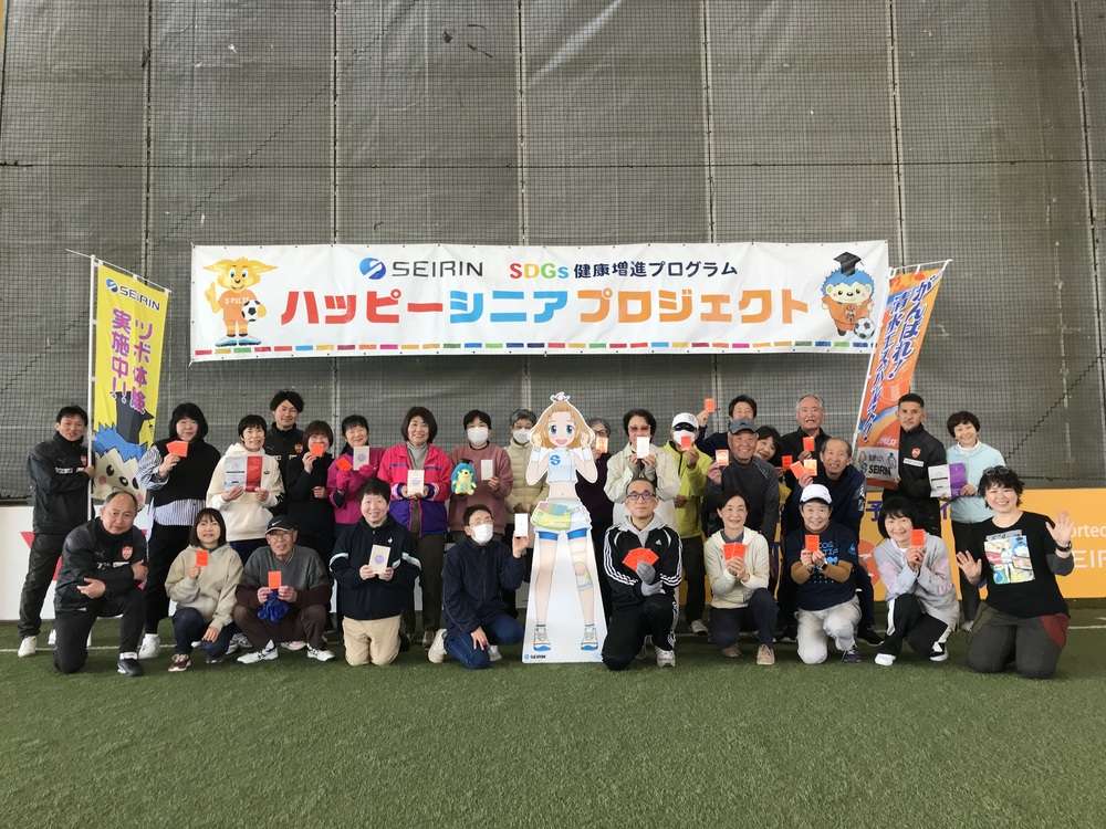 エスパルスドリームフィールド清水(静岡市清水区袖師町)にて、SDGs健康増進プログラム セイリン PRESENTS 「ハッピーシニアプロジェクト」 ~運動とはりで健康に~を3月21日(金)に開催し、24名の皆様にご参加いただきました。