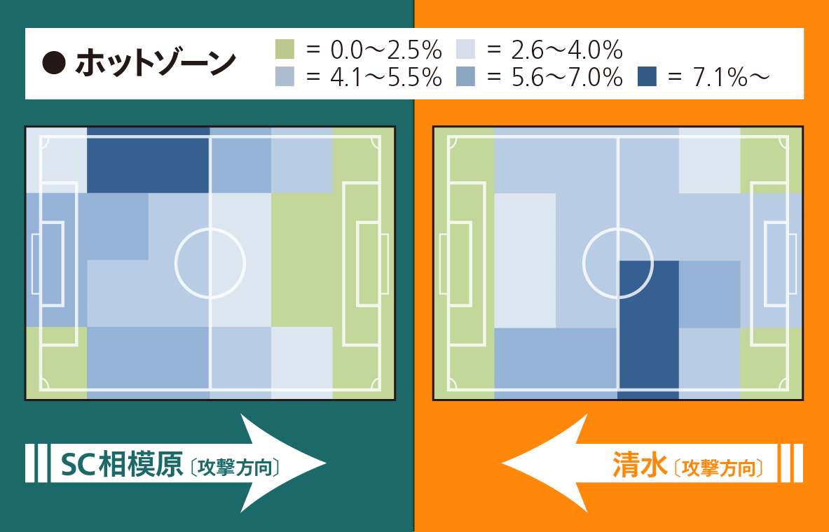 今回の短い中断期間では、敗れた京都戦、G大阪戦で課題として浮き彫りになったプレスの掛け方に重点を置いてトレーニングを積んできたという。ミーティングで相模原の特徴を確認した選手は、「相模原はどちらかというとしっかり後ろからボールを繋いでくるチームという印象。プレスから奪いきってショートカウンターに繋げられれば」と攻撃パターンをイメージした。ただ……