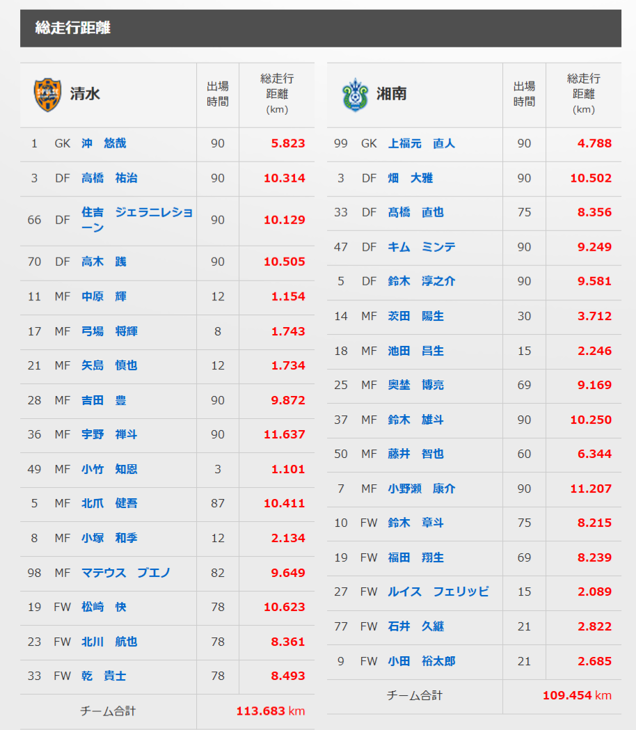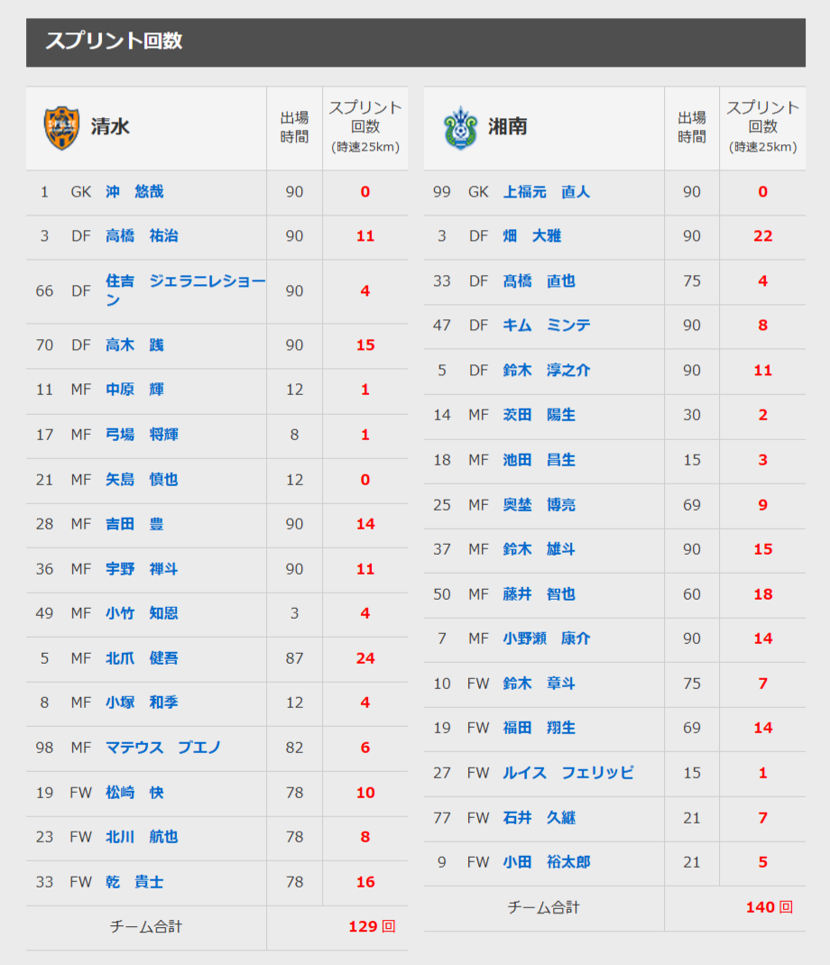 2025年3月29日(土)に行なわれた、明治安田J1リーグ 第7節 vs 湘南 @アイスタ のトラッキングデータは下記の通りです。