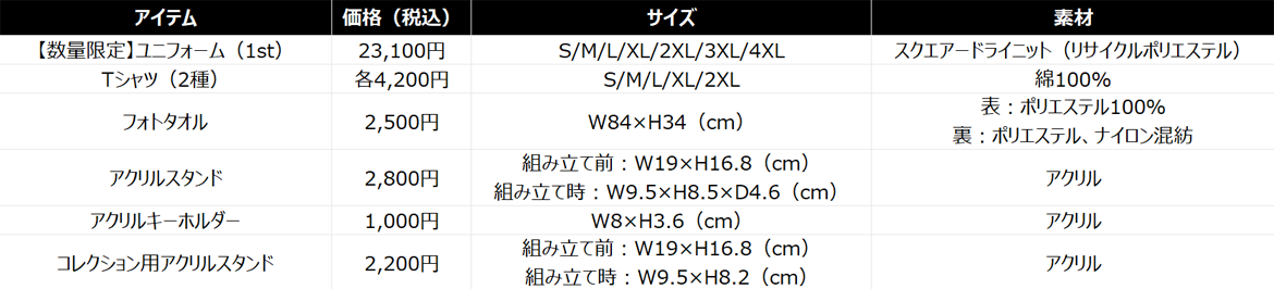 ※ユニフォーム(1st)は数量限定のため、上限に達し次第販売を終了いたします