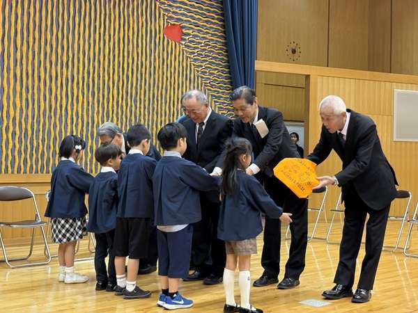 この黄色いバッグを使って、新小学1年生の皆さんが元気に通学していただけると嬉しいです。贈呈式に出席された皆様、ありがとうございました。