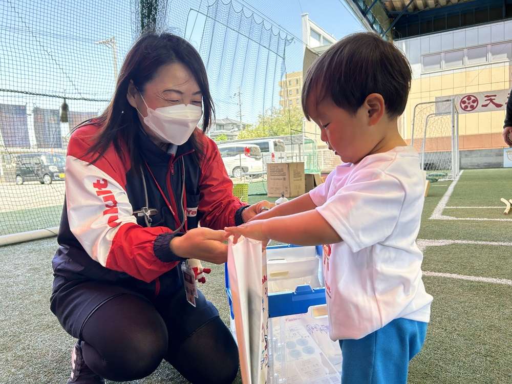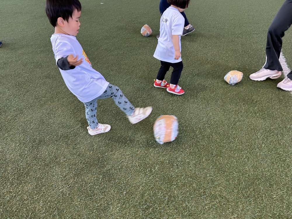 親子で新聞紙を丸めてサッカーボール作りにチャレンジします。手先を使ってモノを作る「工作」は子どもの成長には欠かせない重要な要素の1つとなります。工作を取り入れることで子供たちの好奇心に刺激を与え、集中力を高めます。