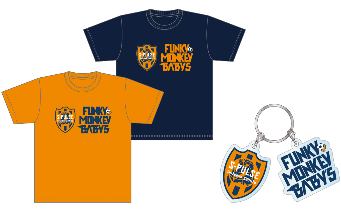5/3(土祝)の名古屋グランパス戦で、スペシャルゲストとしてライブを開催する「FUNKY MONKEY BΛBY'S」とのコラボグッズを、S-PULSE STOREスタジアム店(国立競技場限定)で販売いたします。ぜひ試合とライブの思い出にコラボグッズをお買い求めください!