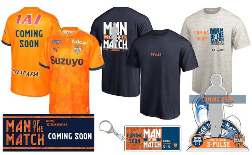 5/11(日)の明治安田J1リーグ 第16節FC町田ゼルビア戦に勝利した場合、翌週「MAN OF THE MATCH」グッズを販売いたします。また、S-PULSE STOREでは、試合終了後からグッズご購入で「ペナント型 勝ち連チャーム(非売品)」を先着でプレゼント!